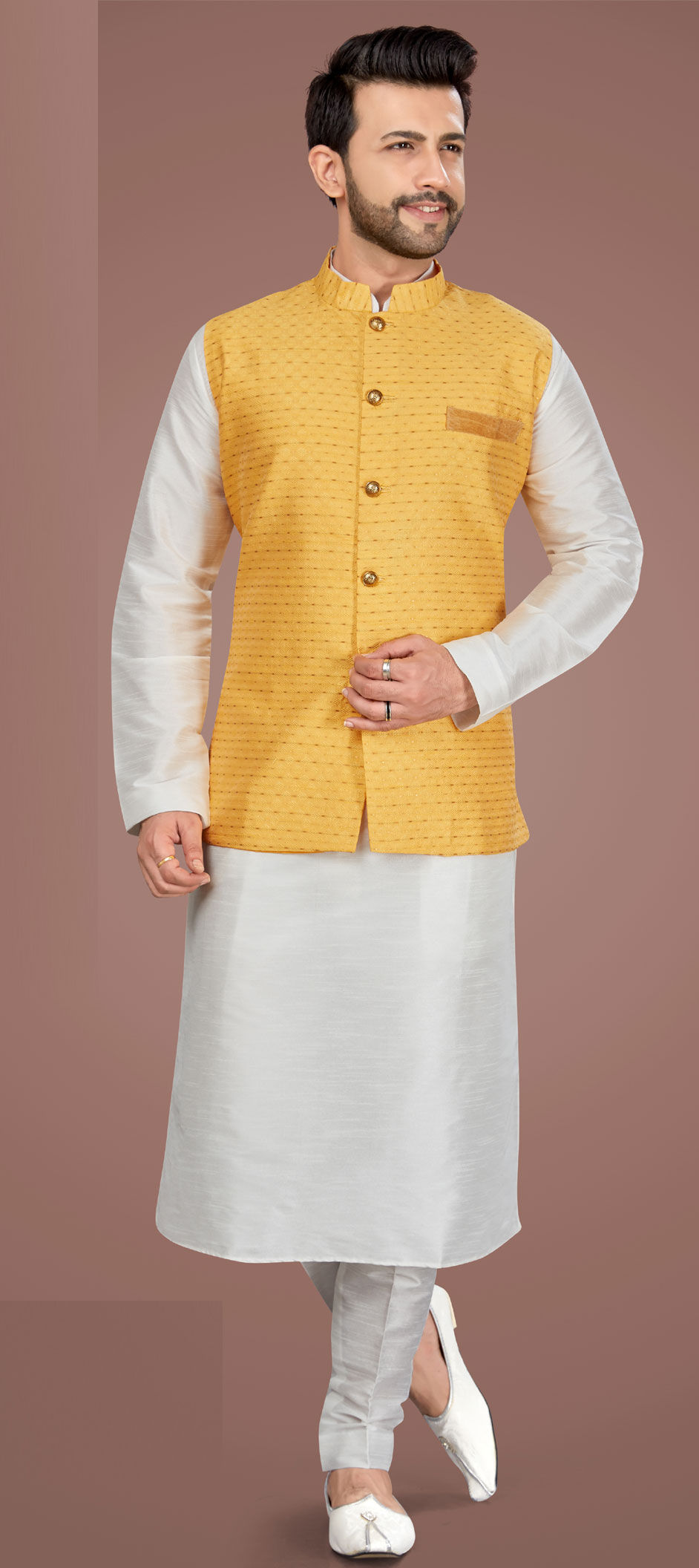 Art Silk Kurta Pyjama with Jacket