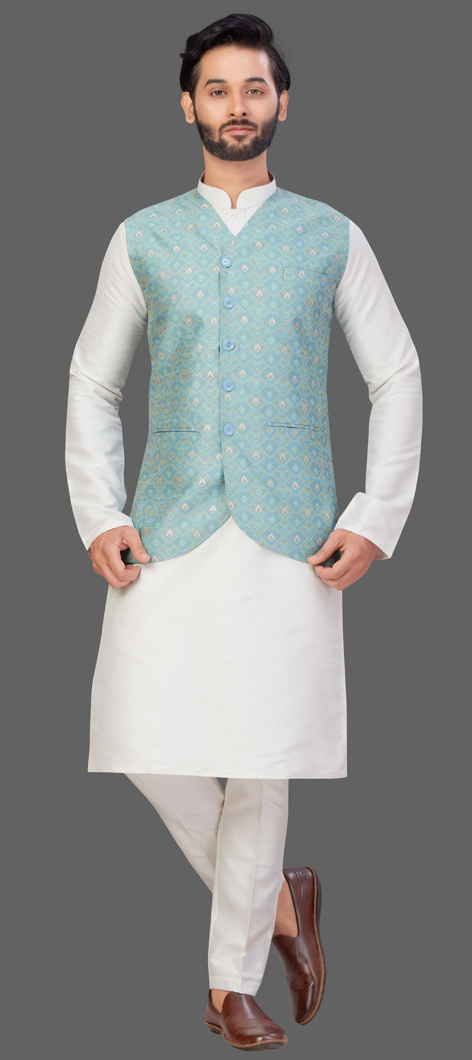 Art Silk Kurta Pyjama with Jacket