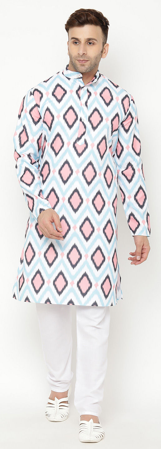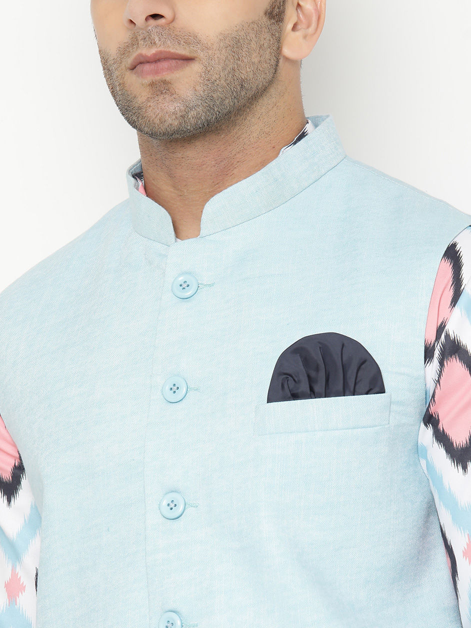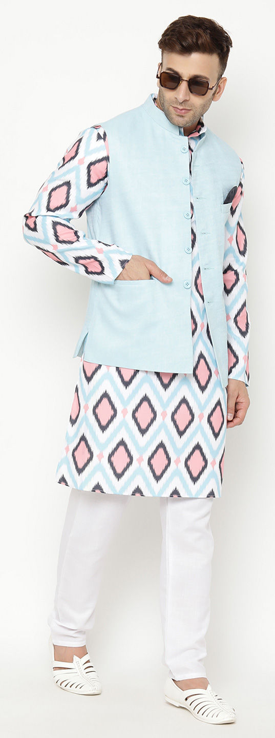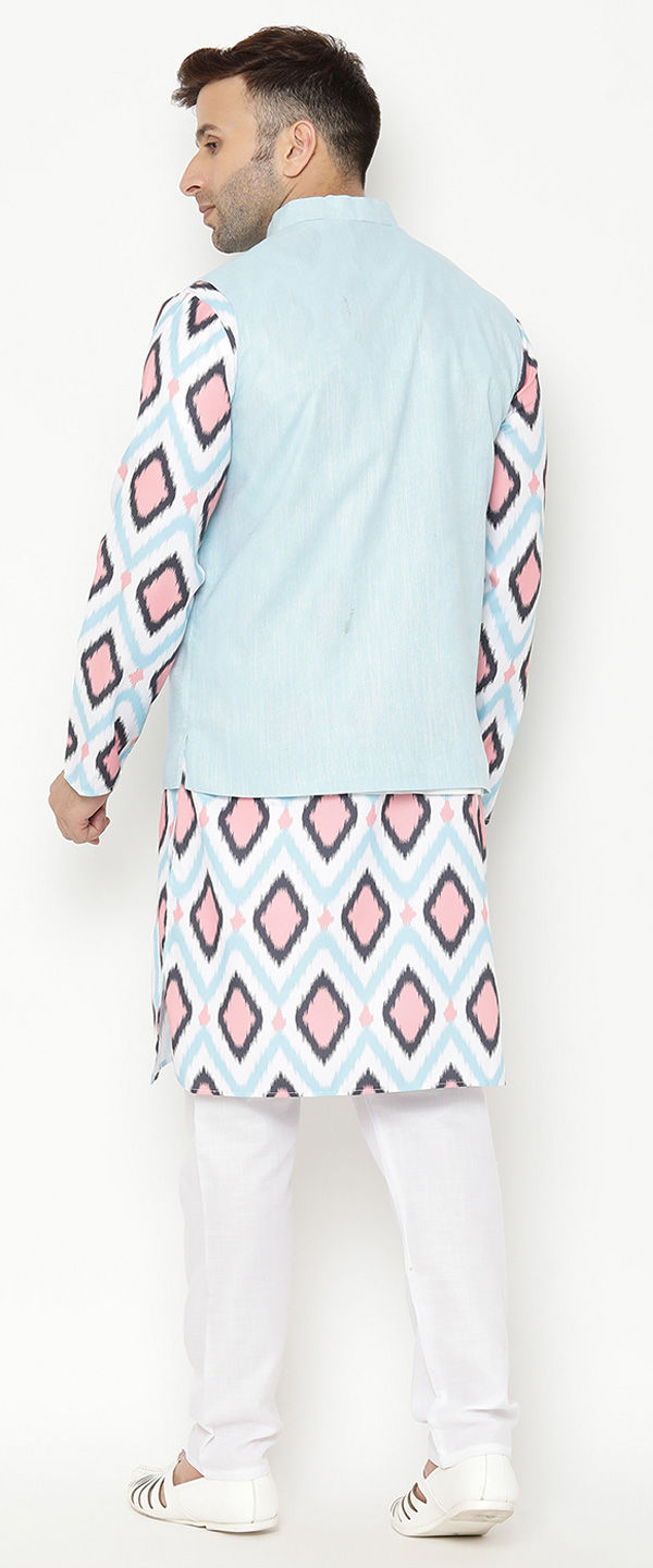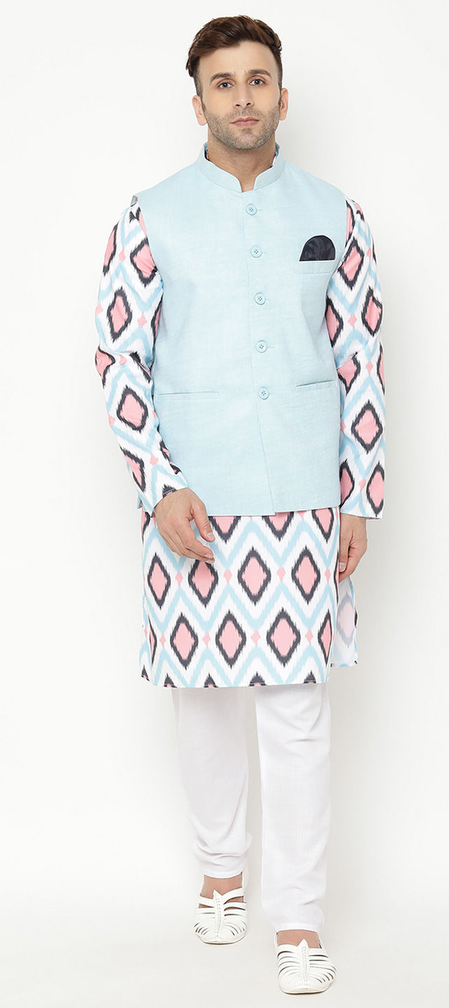 Blue color Kurta Pyjama with Jacket in Blended Cotton fabric with Printed work