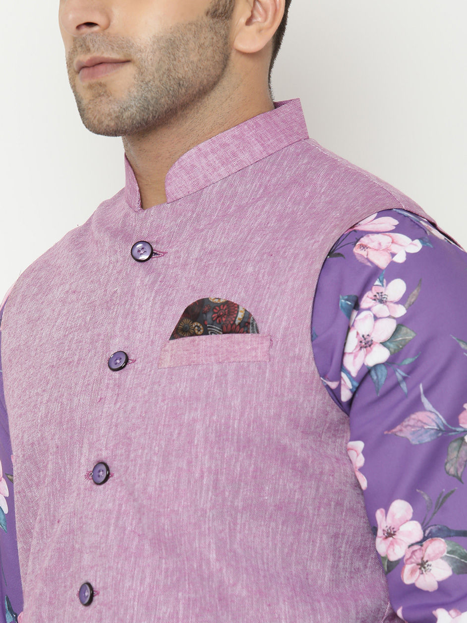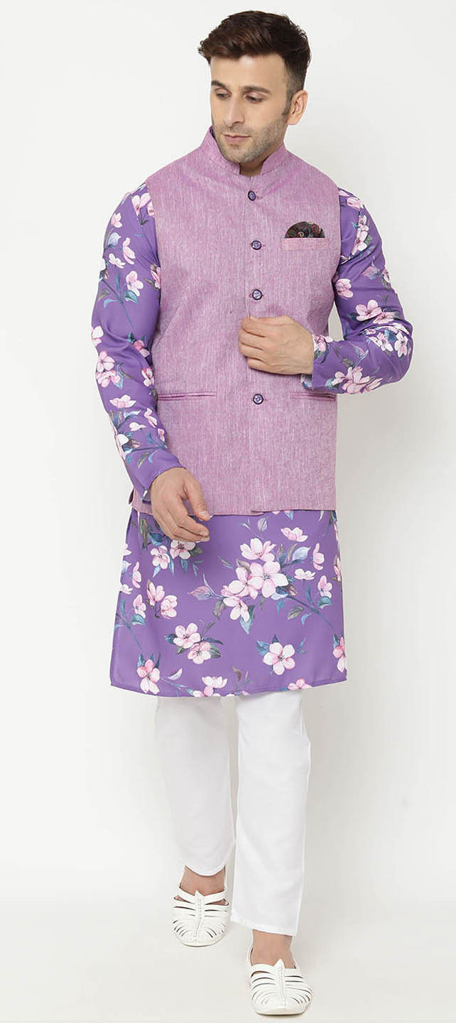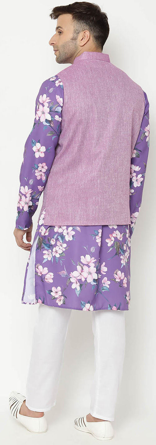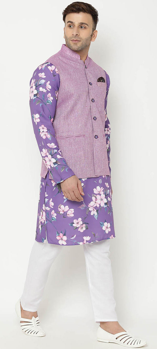 Purple and Violet color Kurta Pyjama with Jacket in Blended Cotton fabric with Floral, Printed work