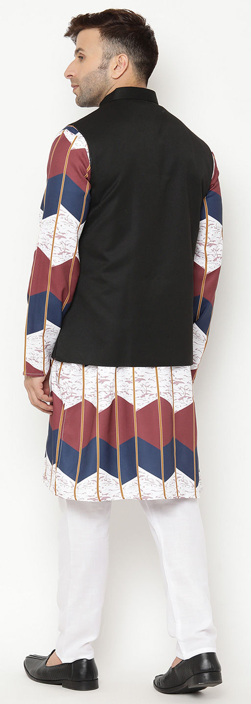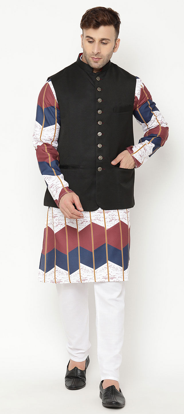 White and Off White color Kurta Pyjama with Jacket in Blended Cotton fabric with Printed work
