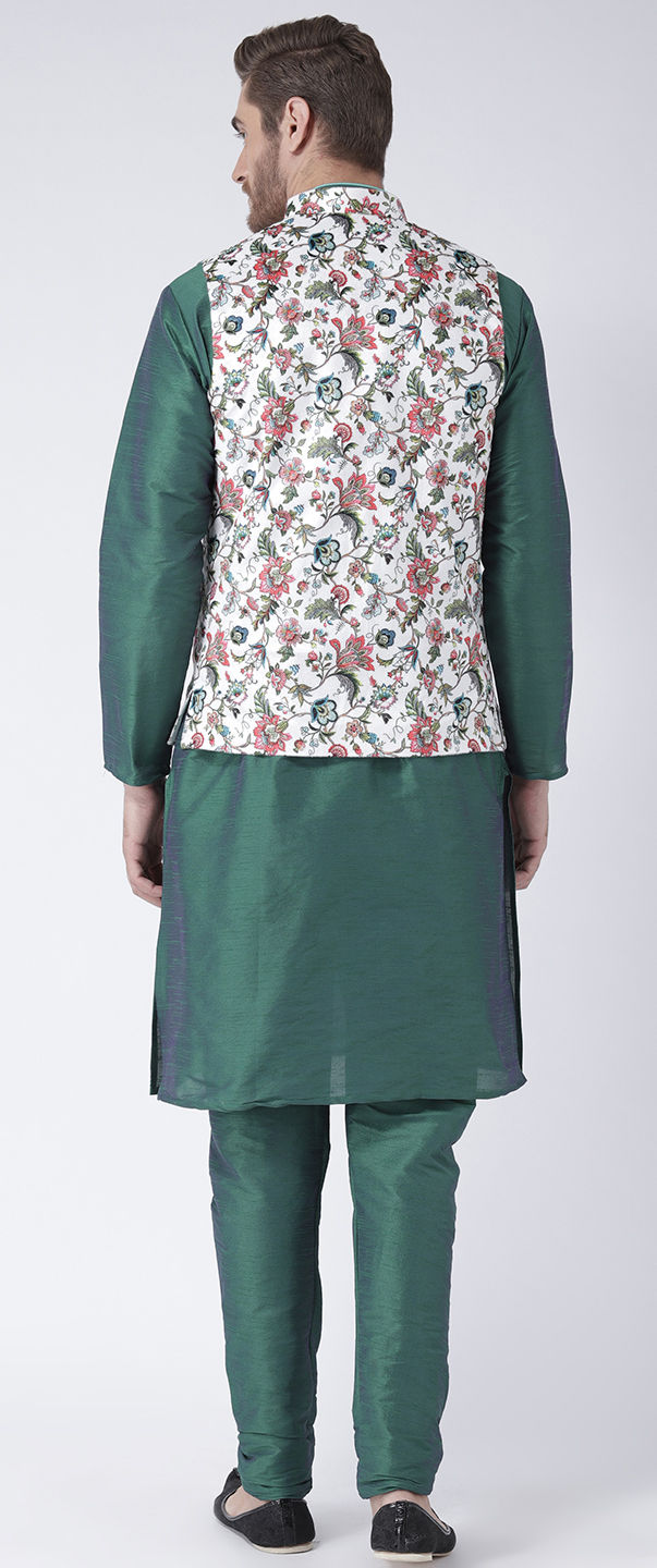 Green color Kurta Pyjama with Jacket in Blended fabric with Thread work