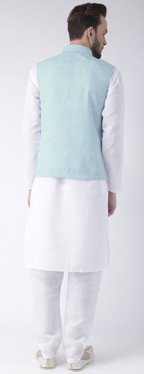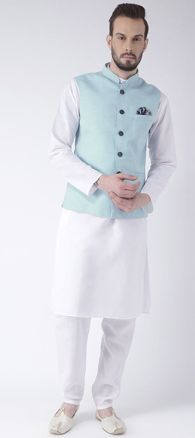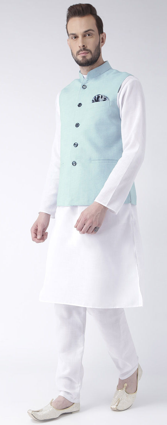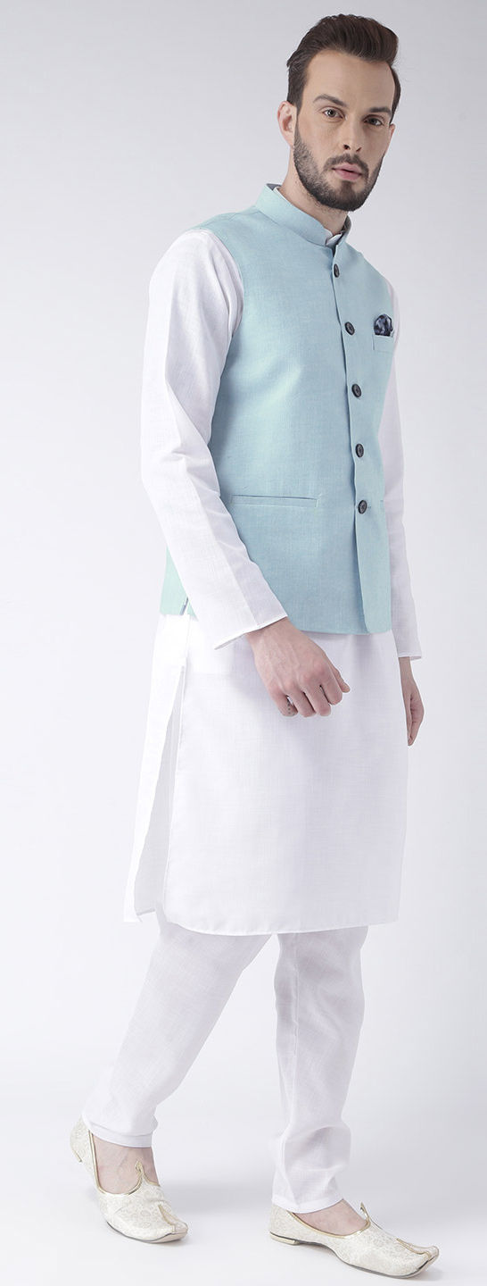 White and Off White color Kurta Pyjama with Jacket in Cotton fabric with Thread work
