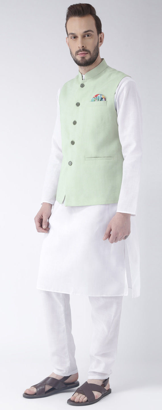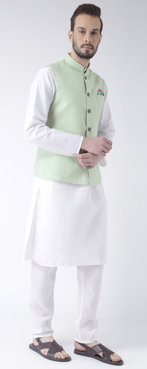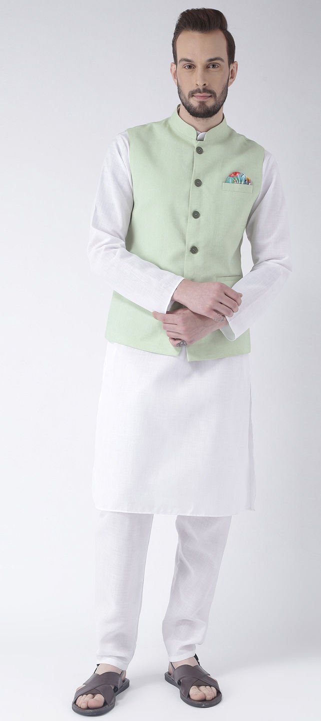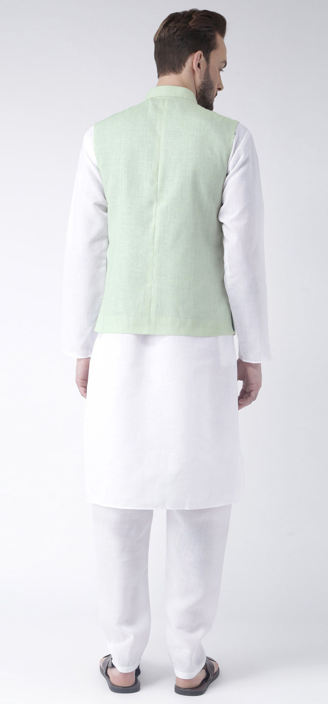 White and Off White color Kurta Pyjama with Jacket in Cotton fabric with Thread work