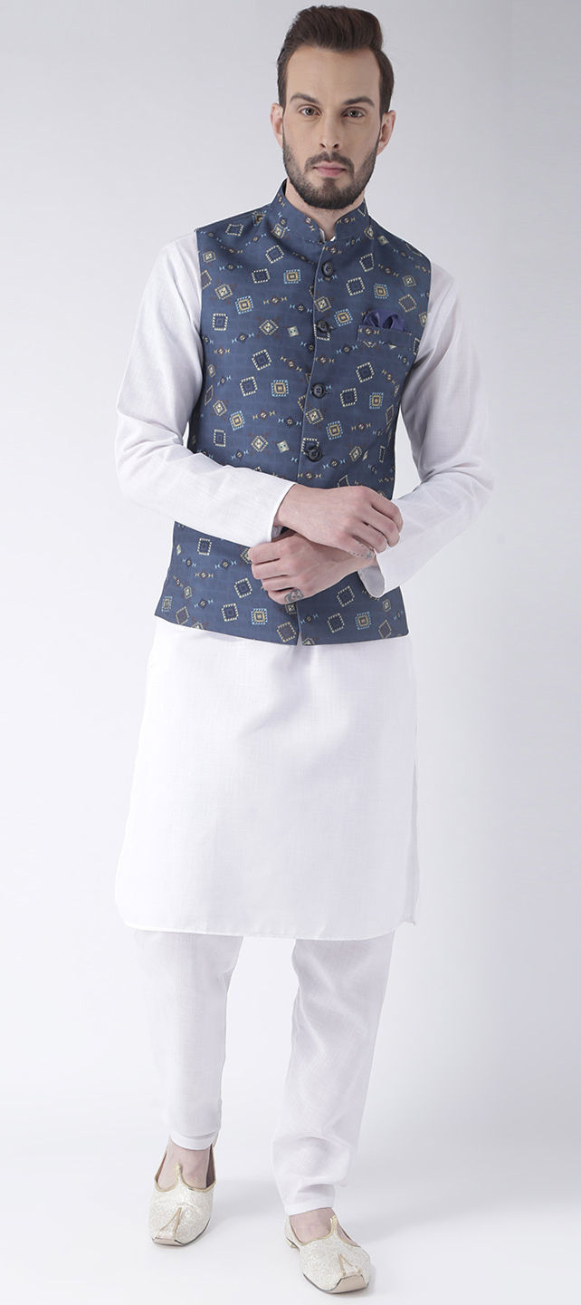 White and Off White color Kurta Pyjama with Jacket in Cotton fabric with Thread work