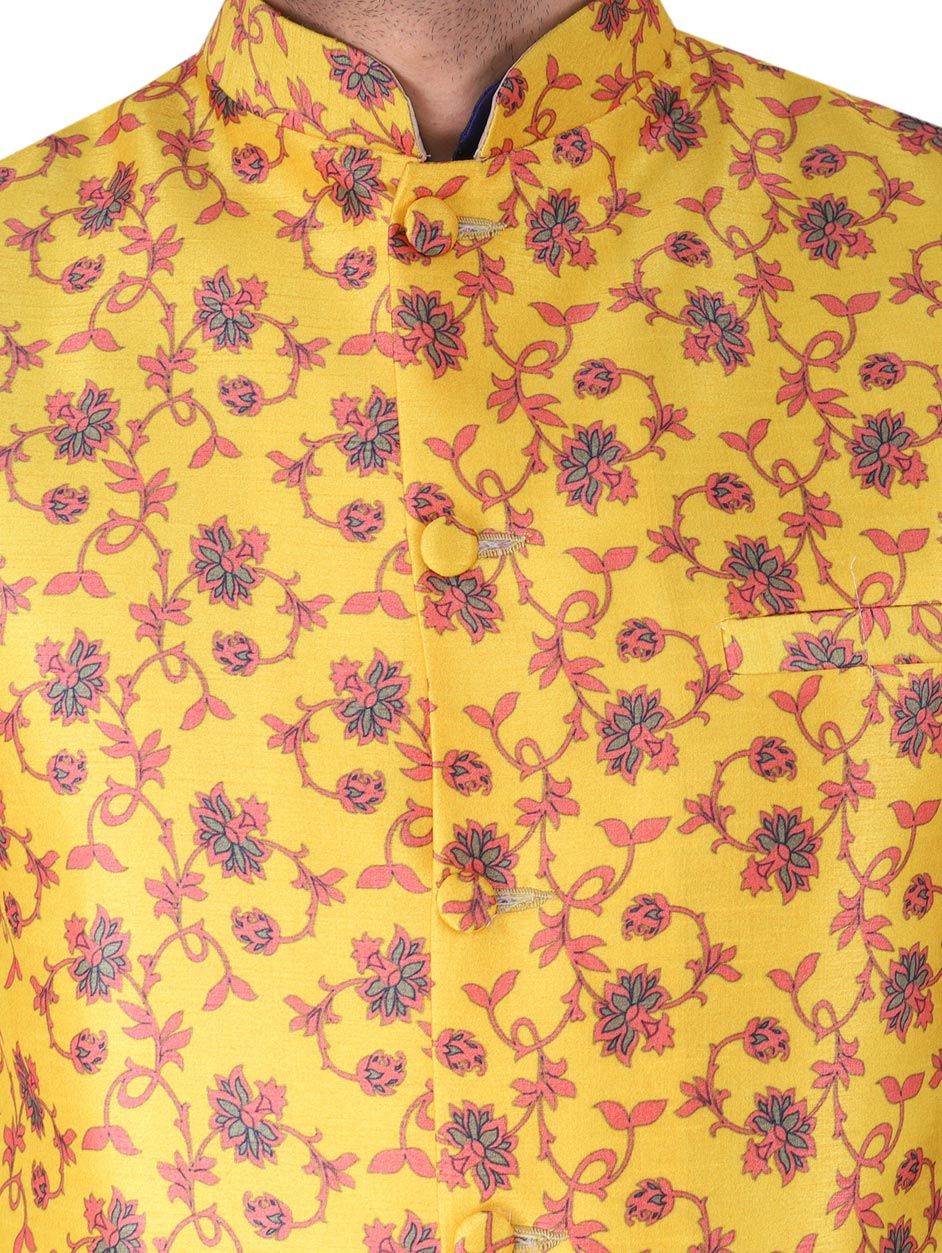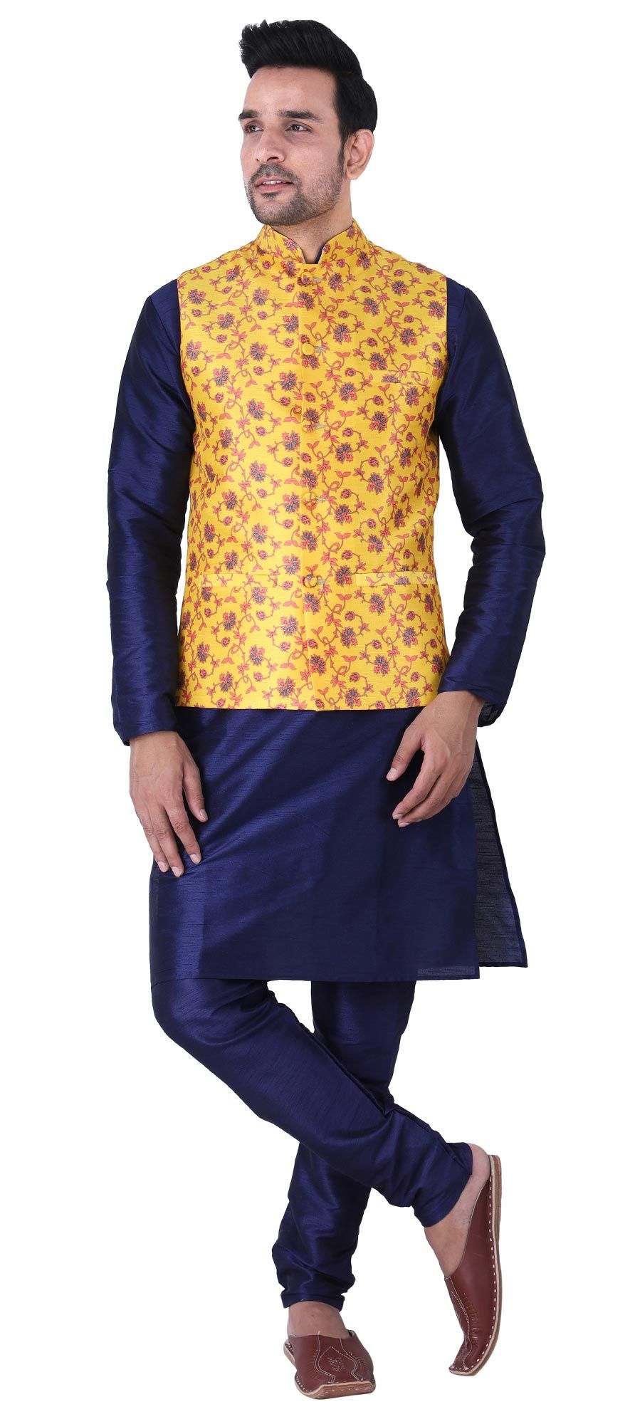 Blue color Kurta Pyjama with Jacket in Dupion Silk fabric with Printed work