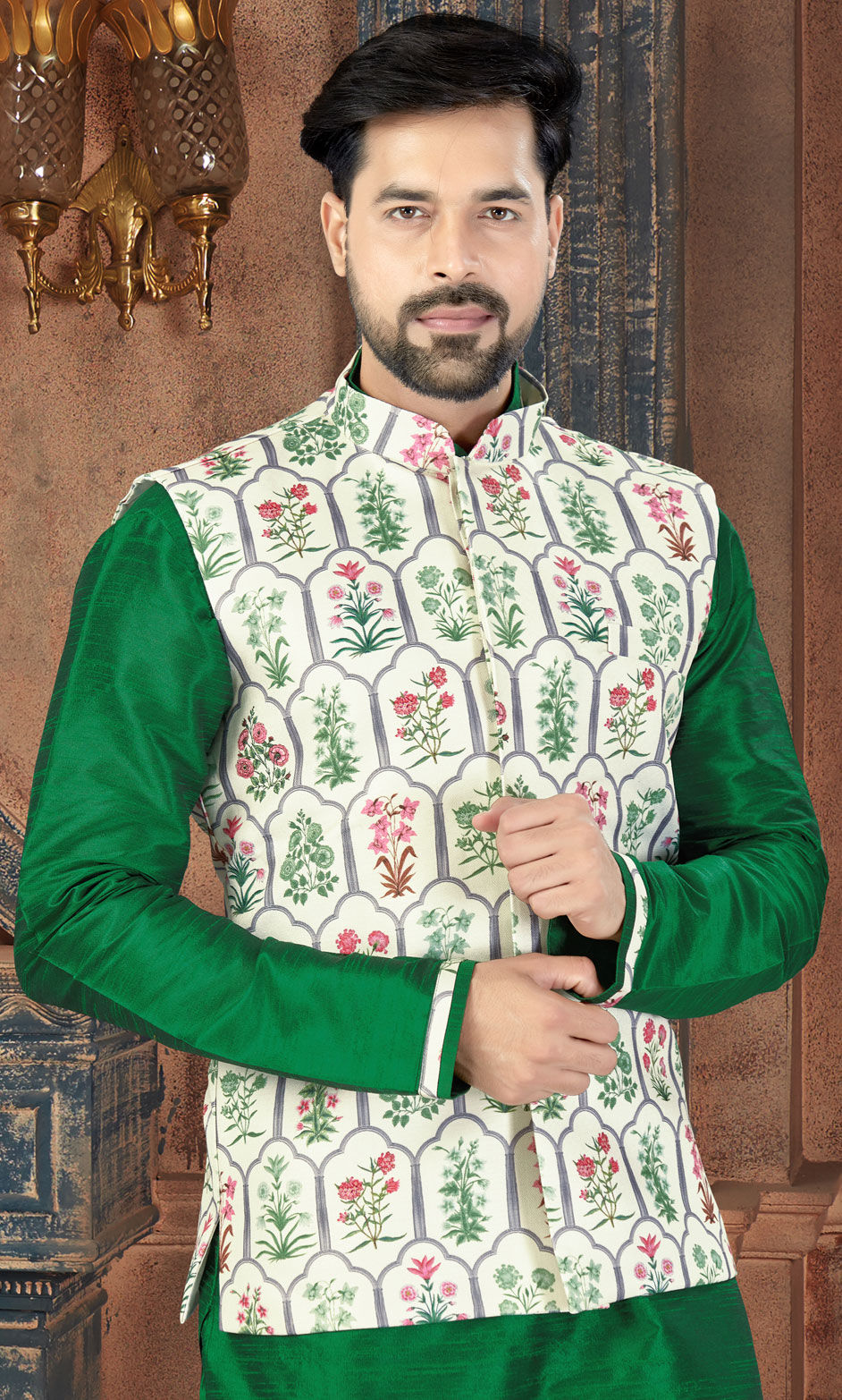 in Green with Digital Print work