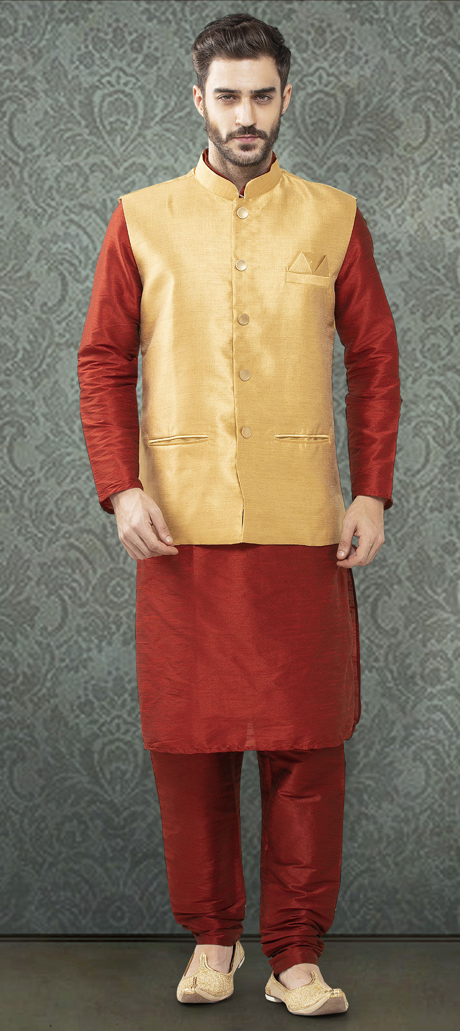 in Red and Maroon with Thread work