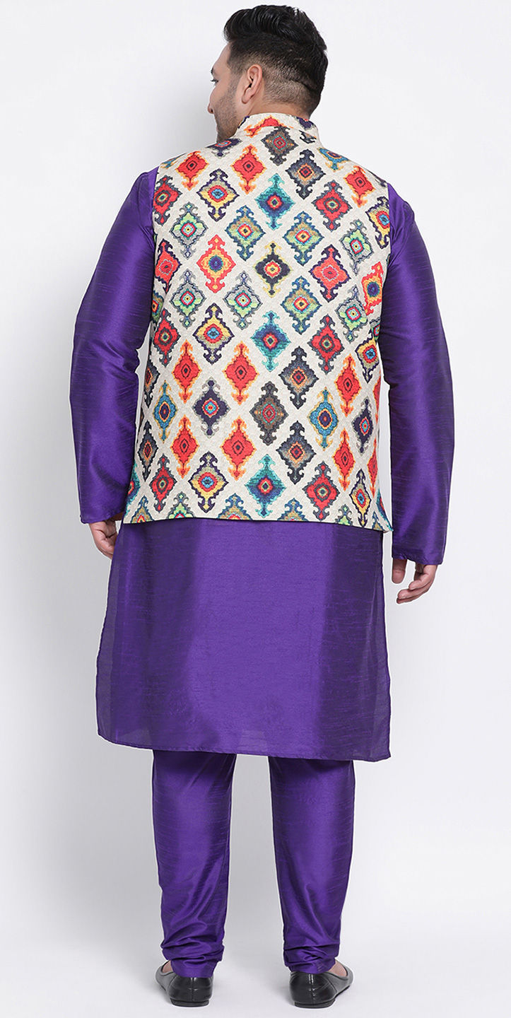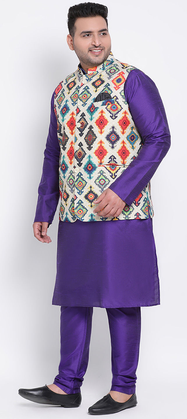 Purple and Violet color Kurta Pyjama with Jacket in Polyester Silk fabric with Printed work