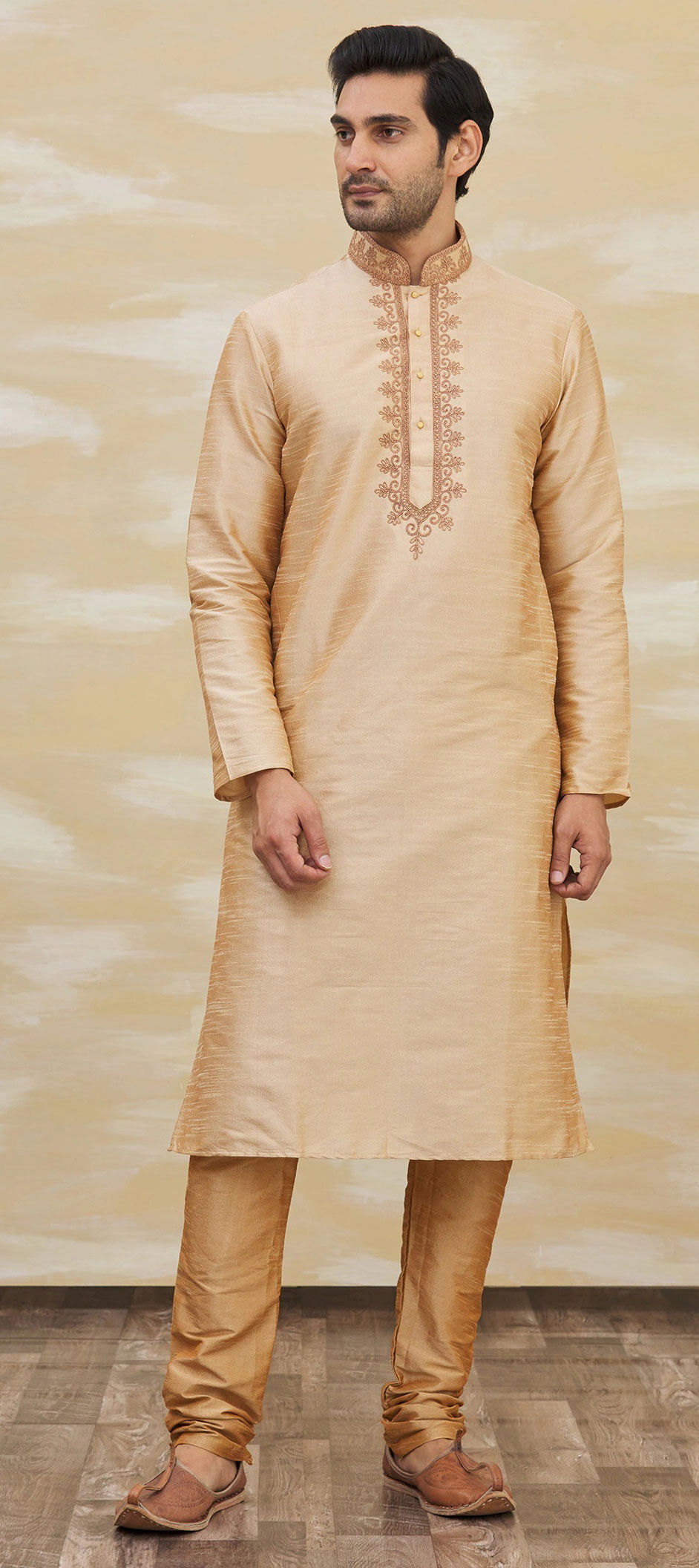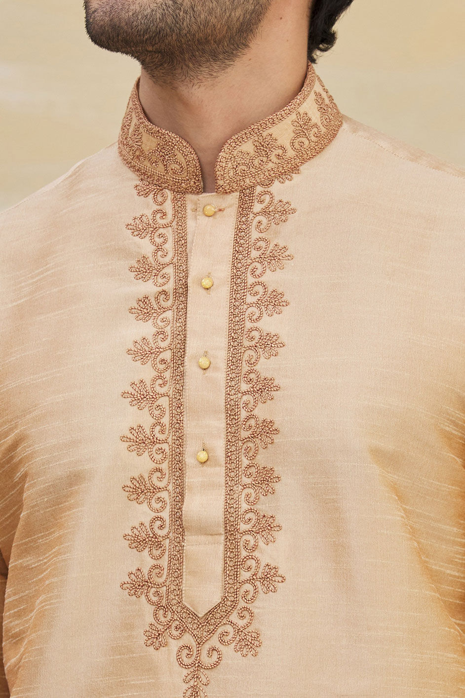 in Beige and Brown with Thread work