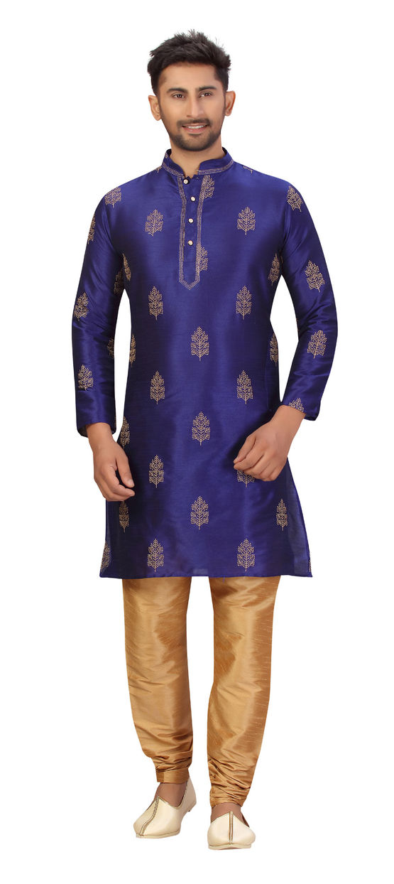 Blue color Kurta Pyjamas in Art Silk fabric with Printed work