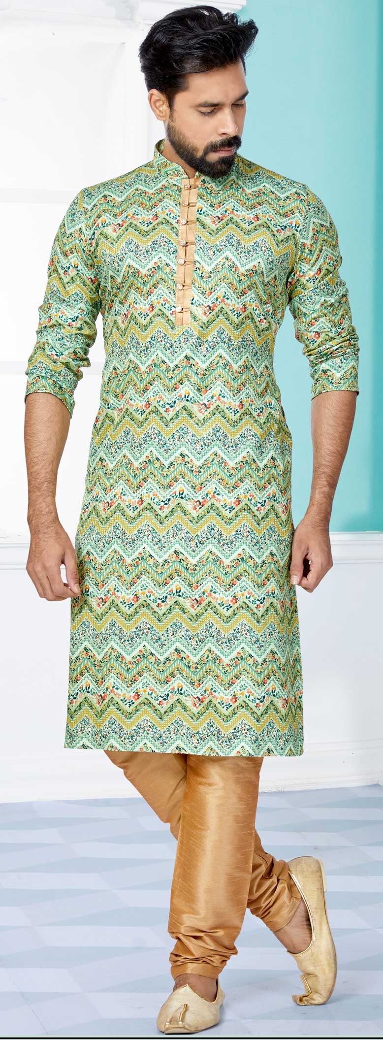 Art Silk Kurta Pyjamas in Multicolor with Digital Print work