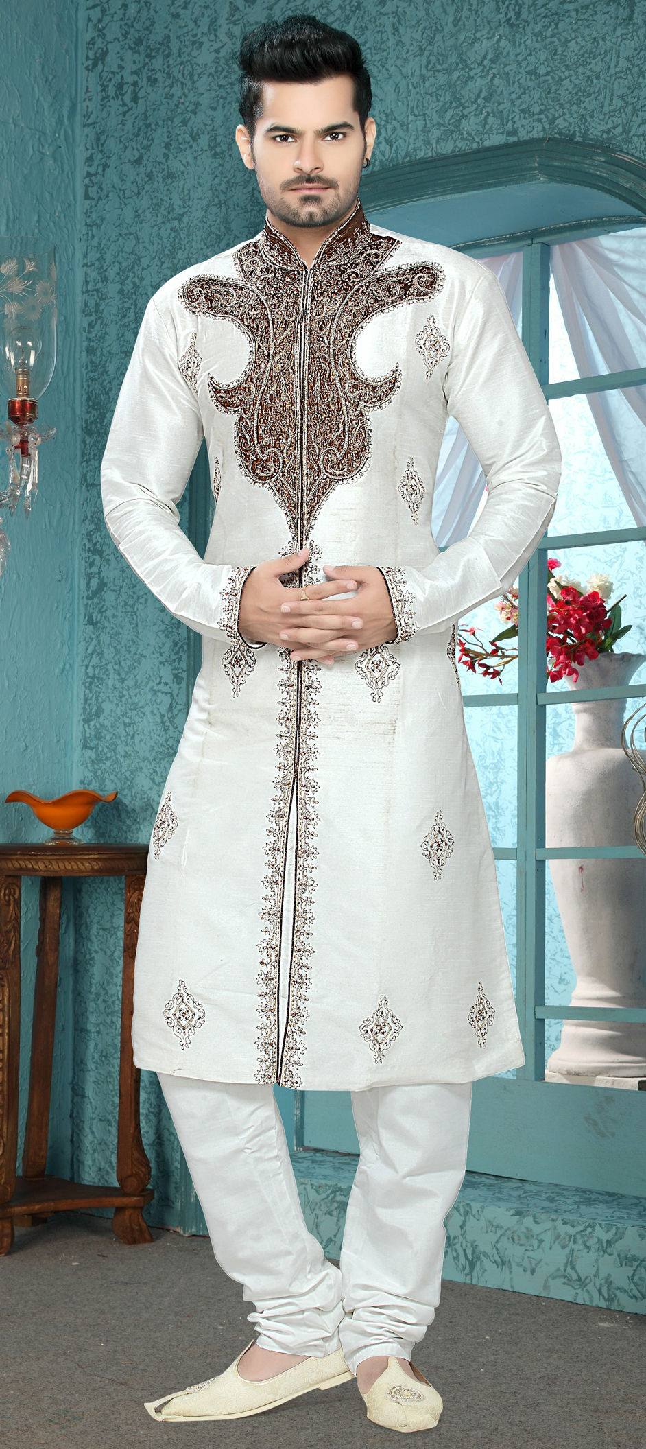 White and Off White color Kurta Pyjamas in Art Silk fabric with Patch work