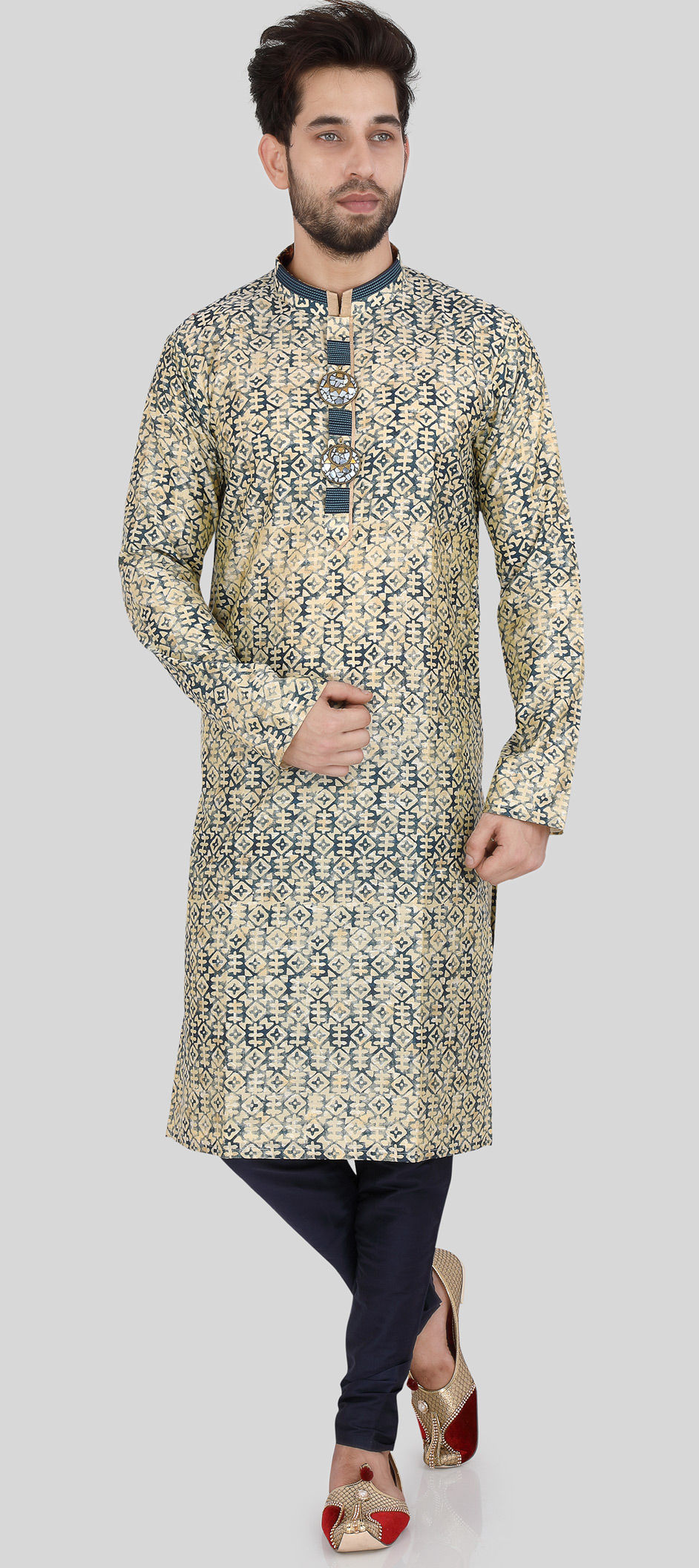Multicolor color Kurta Pyjamas in Banarasi Silk fabric with Printed work