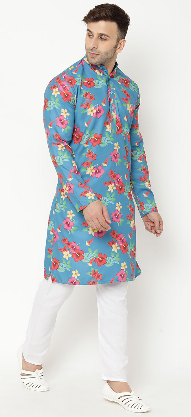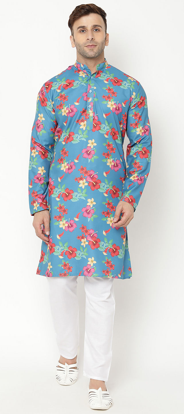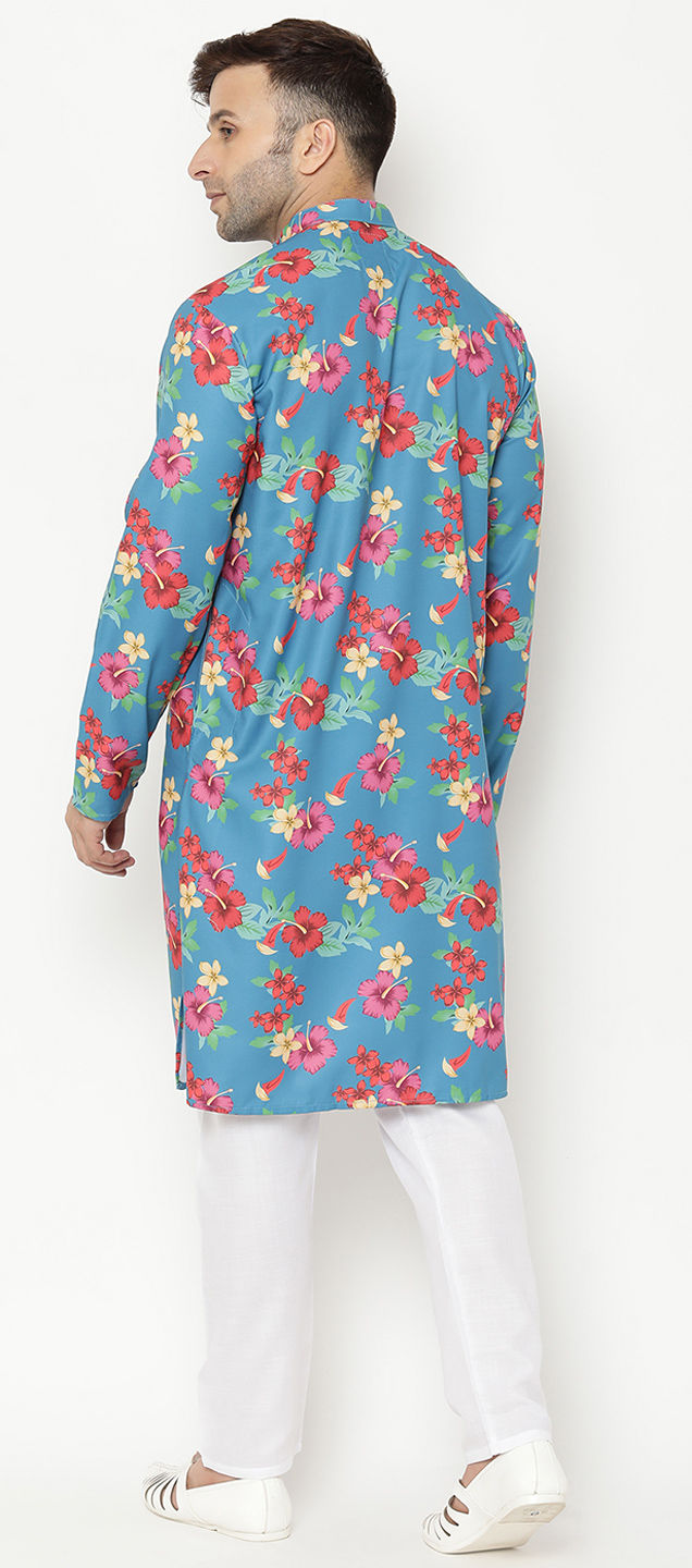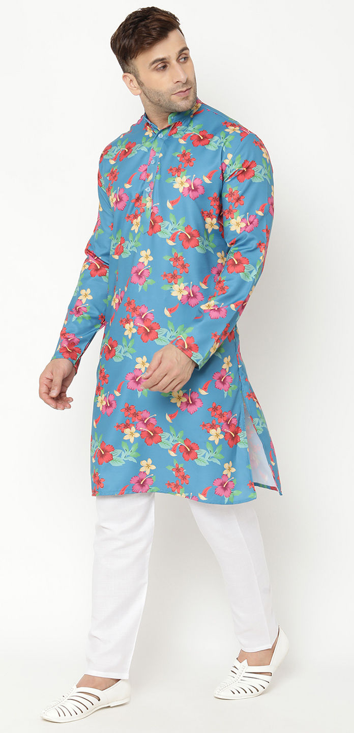 Blue color Kurta Pyjamas in Blended Cotton fabric with Floral, Printed work