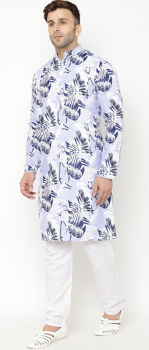 Blue color Kurta Pyjamas in Blended Cotton fabric with Printed work