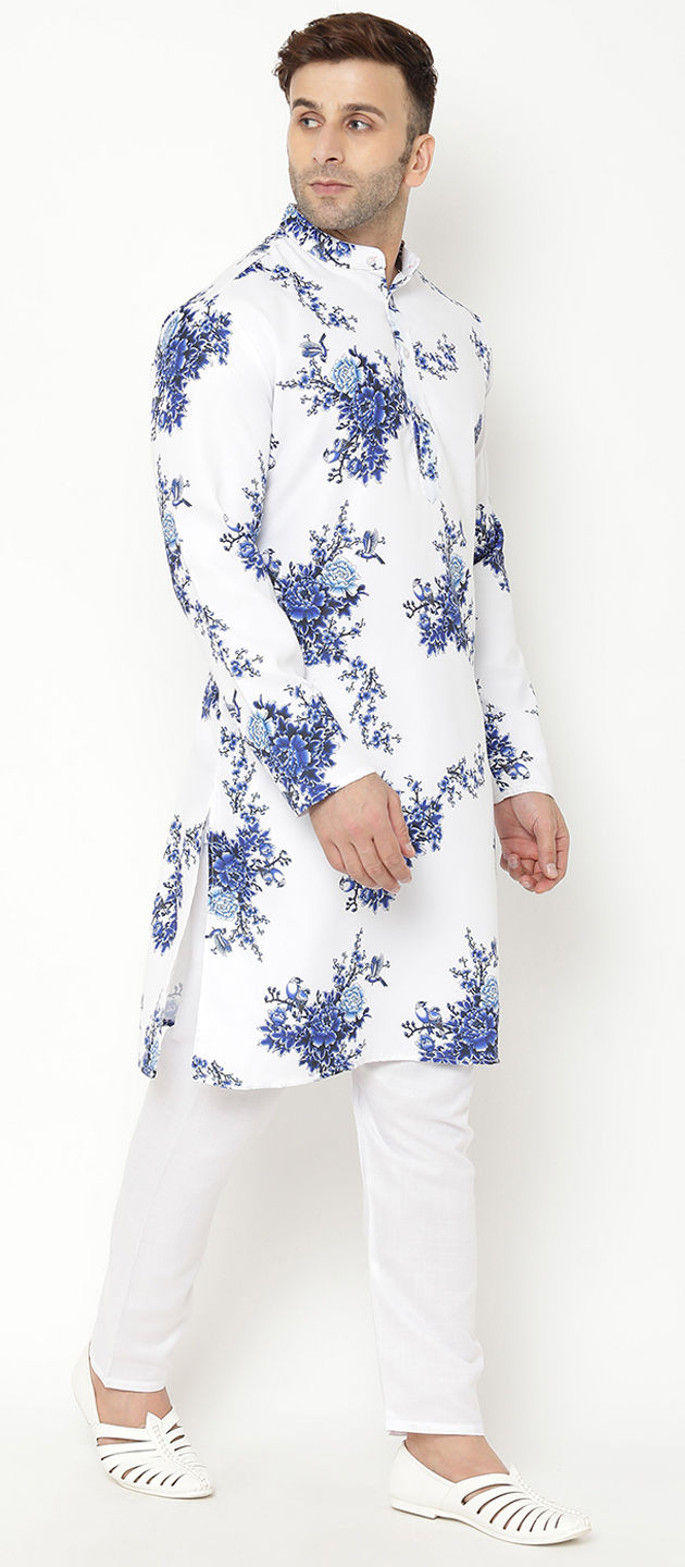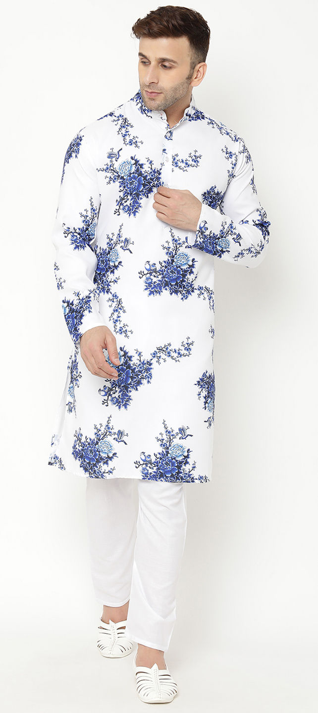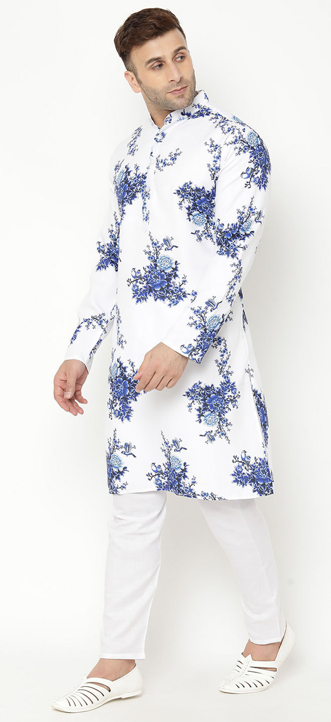 White and Off White color Kurta Pyjamas in Blended Cotton fabric with Floral, Printed work
