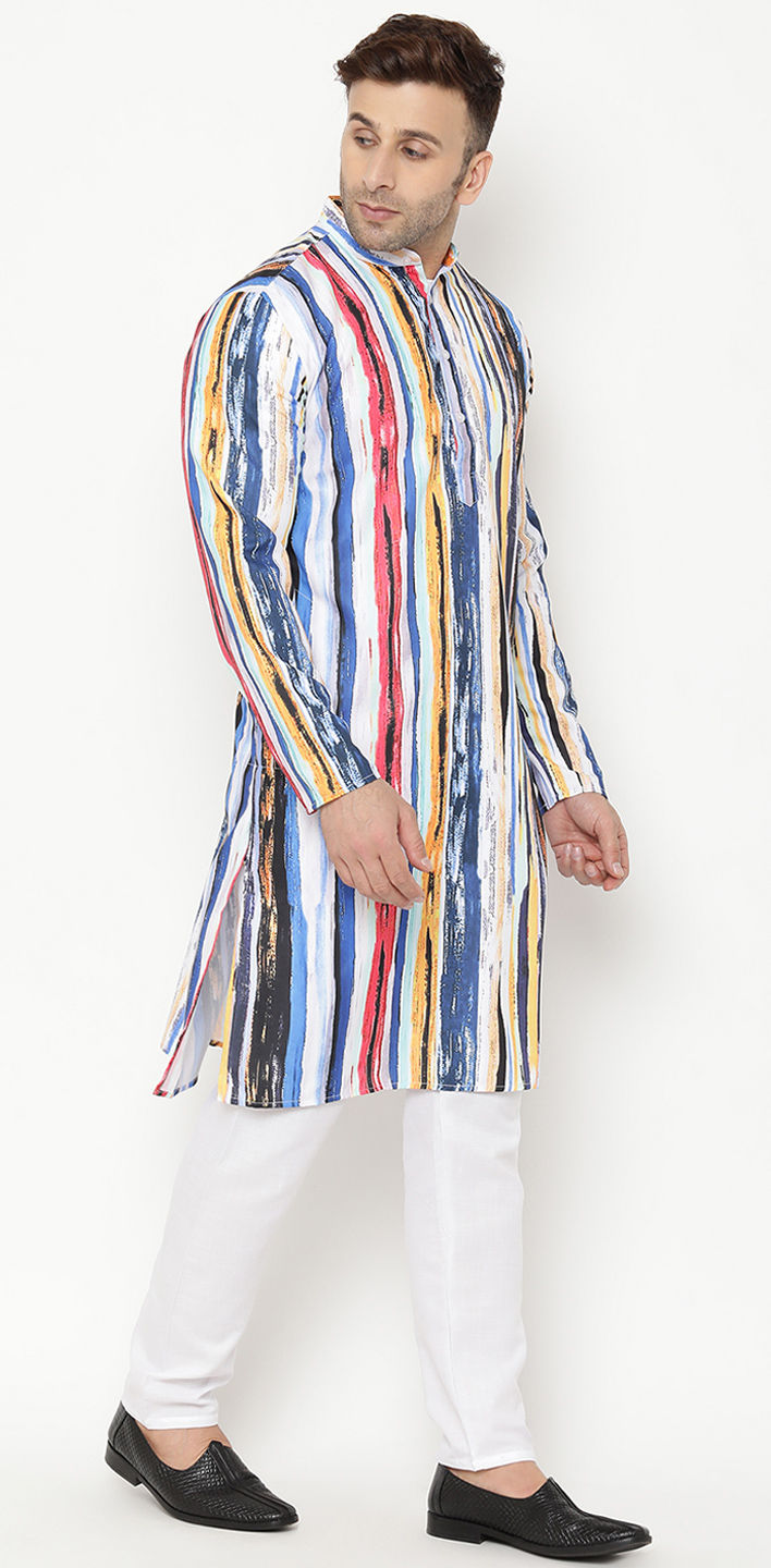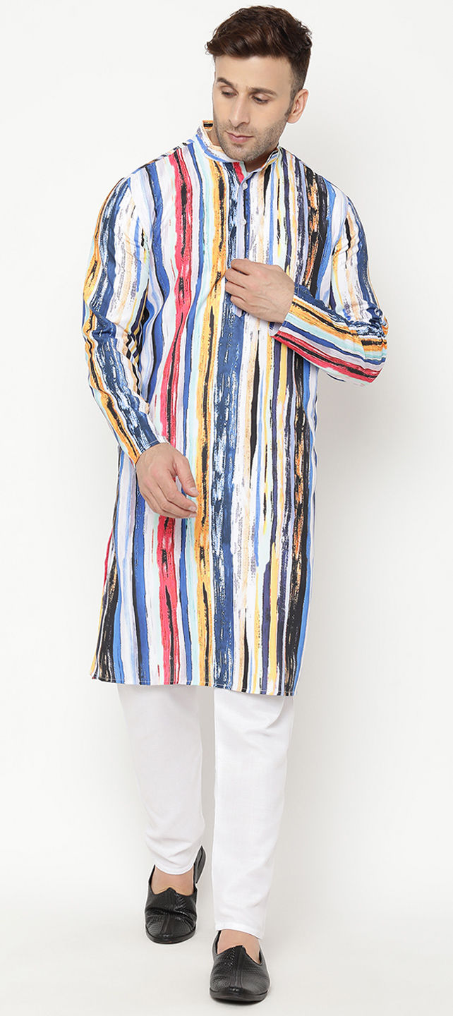 White and Off White color Kurta Pyjamas in Blended Cotton fabric with Printed work