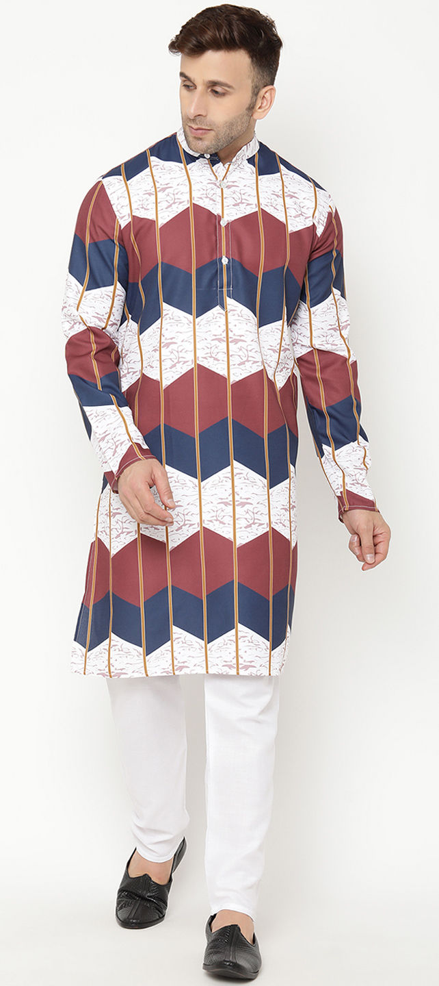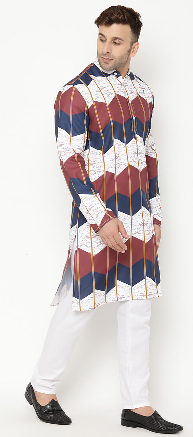 White and Off White color Kurta Pyjamas in Blended Cotton fabric with Printed work