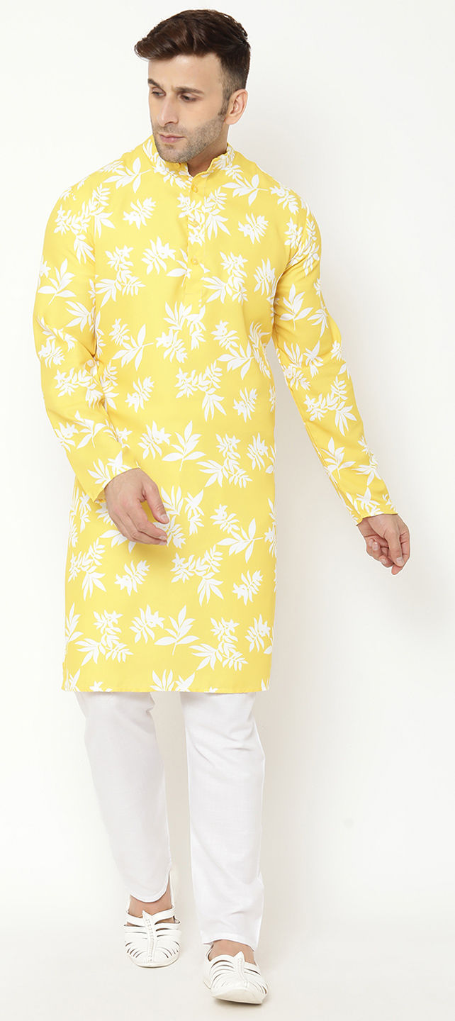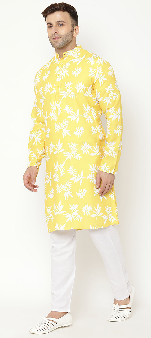 Yellow color Kurta Pyjamas in Blended Cotton fabric with Printed work