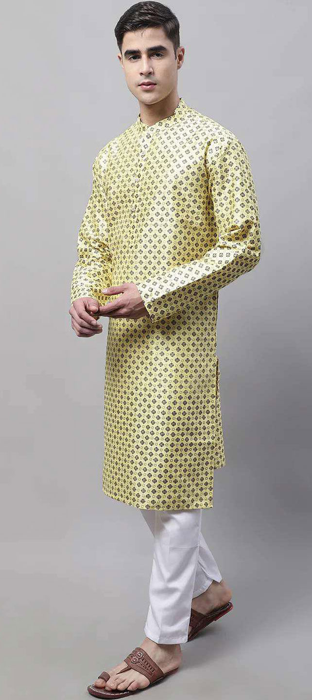 Yellow color Kurta Pyjamas in Blended fabric with Digital Print work