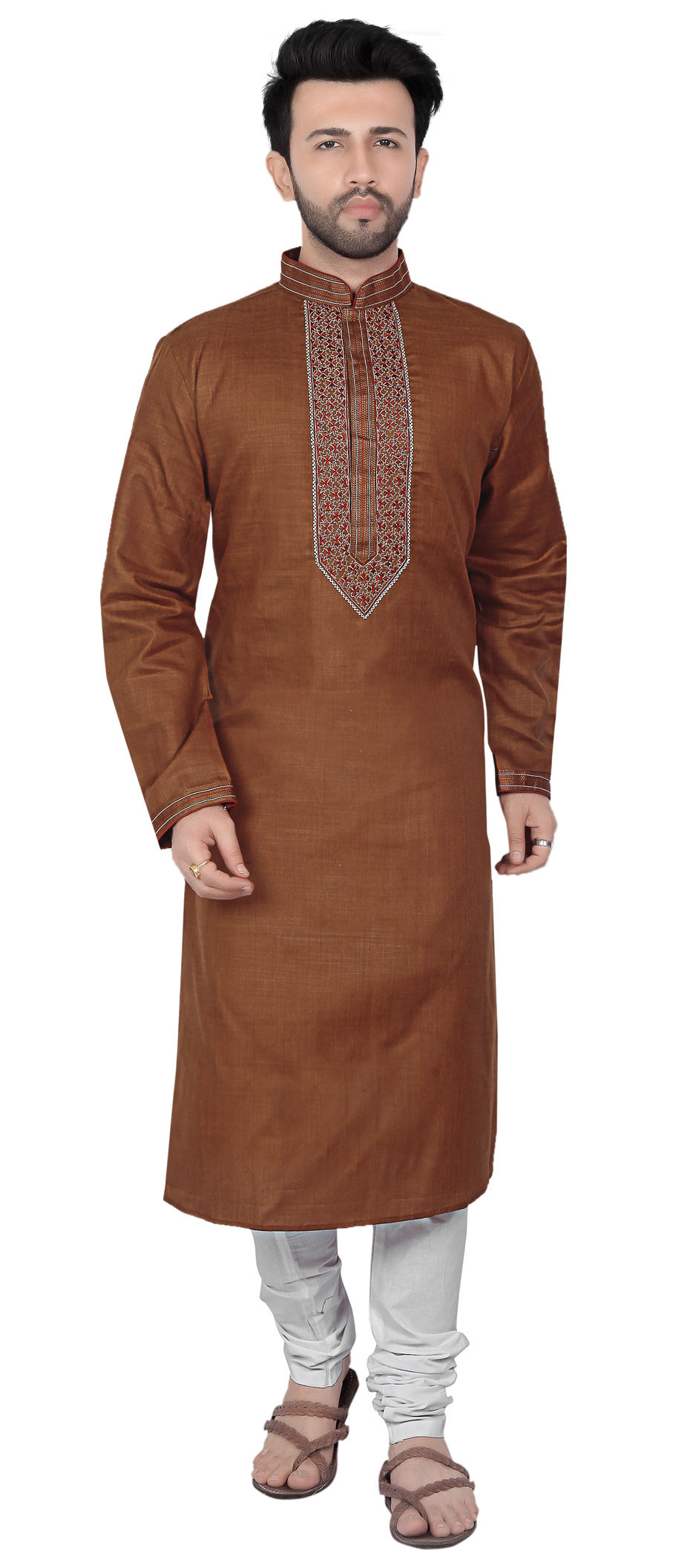 in Beige and Brown with Thread work