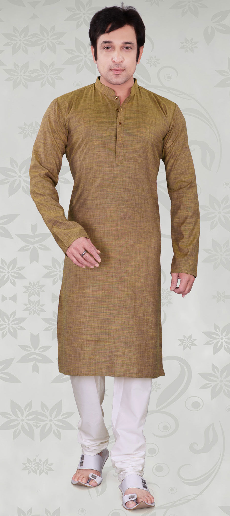 in Beige and Brown with Thread work