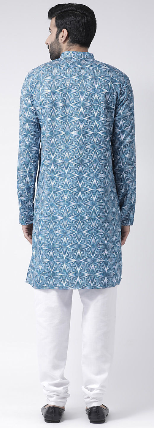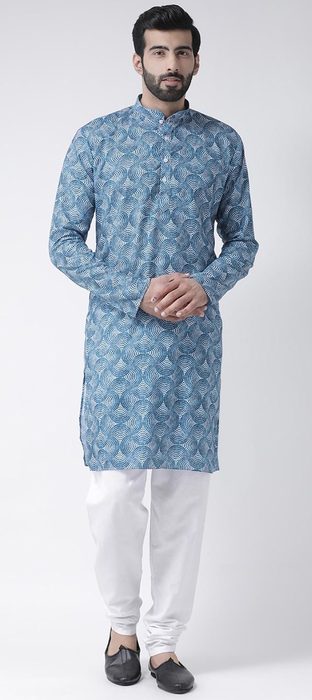Blue color Kurta Pyjamas in Cotton fabric with Printed work