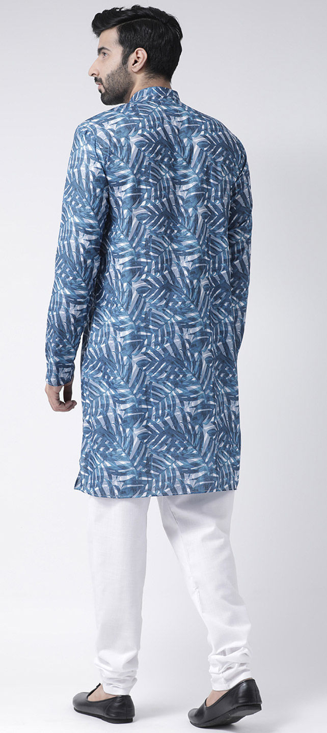 Blue color Kurta Pyjamas in Cotton fabric with Printed work