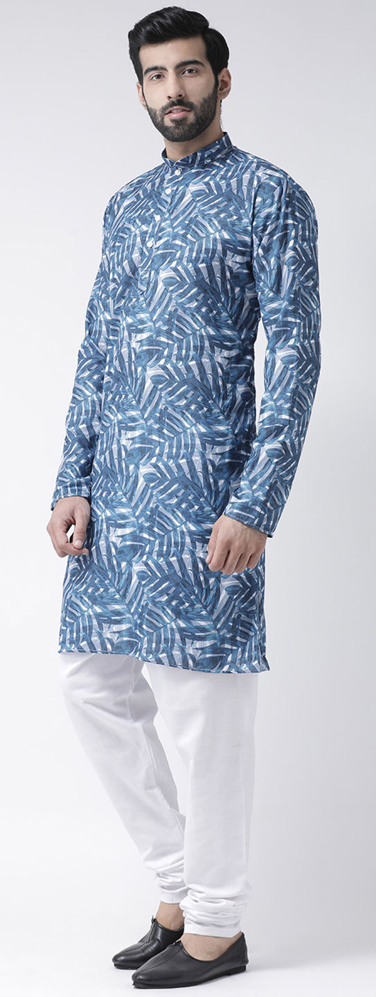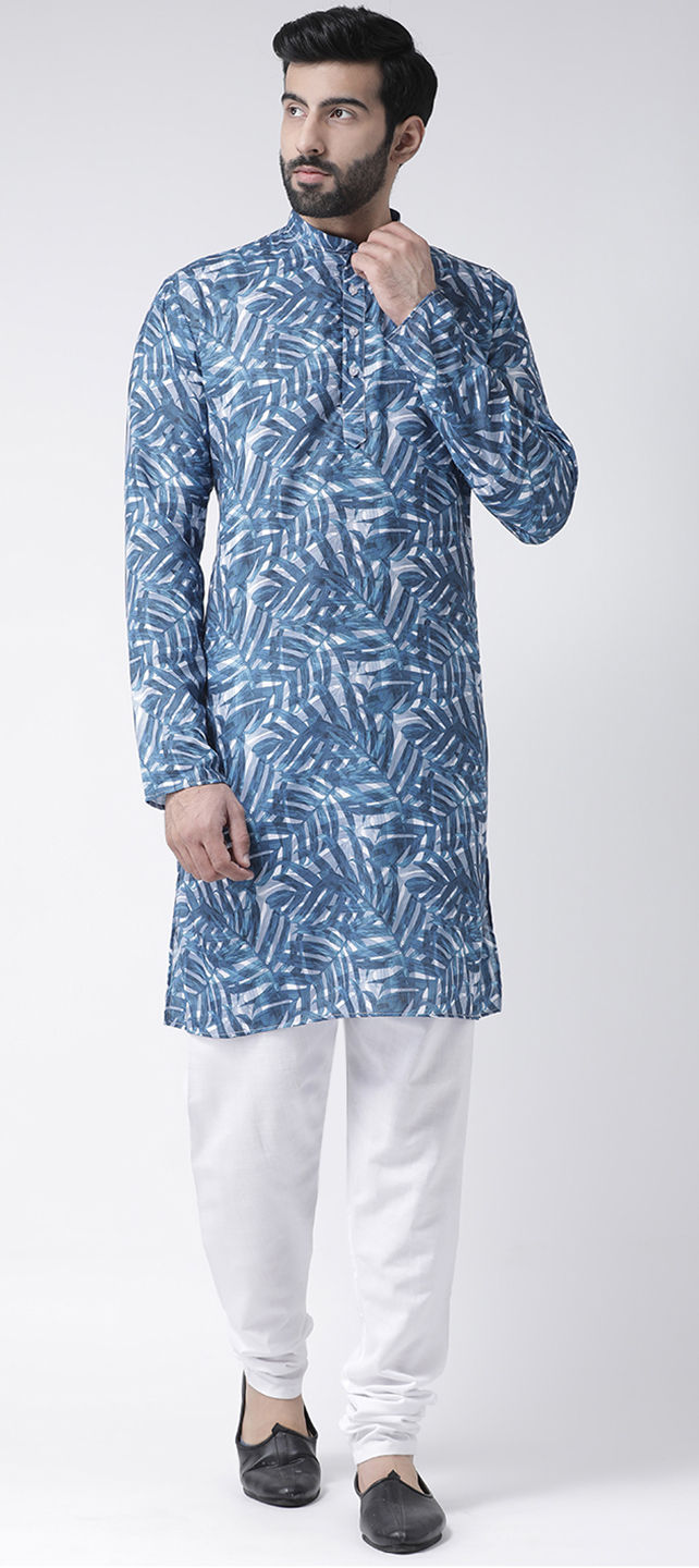 Blue color Kurta Pyjamas in Cotton fabric with Printed work