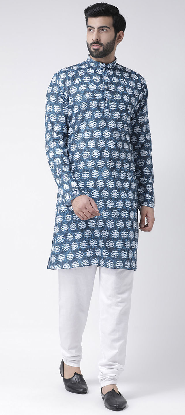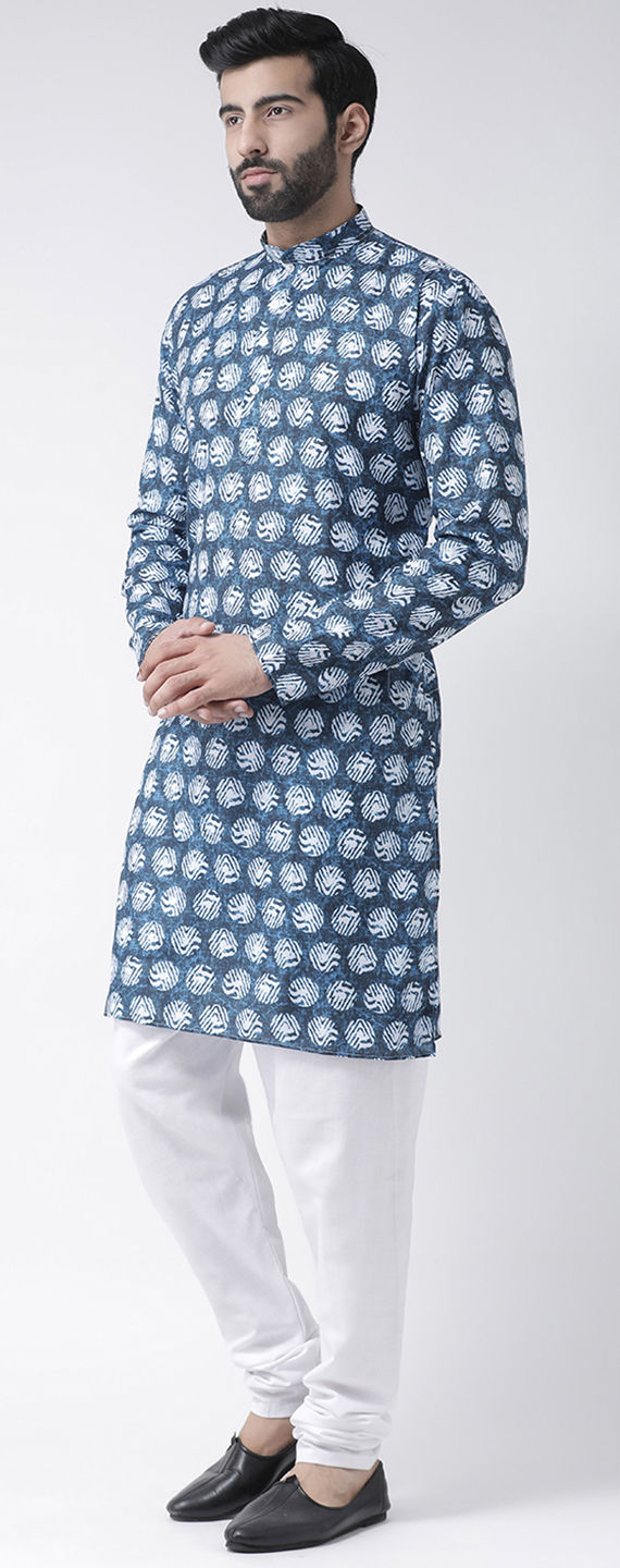 Blue color Kurta Pyjamas in Cotton fabric with Printed work