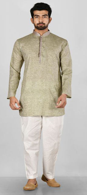 Green color Kurta Pyjamas in Cotton fabric with Embroidered, Thread work