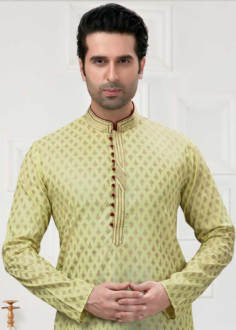 Green color Kurta Pyjamas in Cotton fabric with Printed work