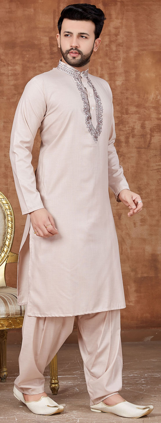 Pink and Majenta color Kurta Pyjamas in Cotton fabric with Embroidered, Thread work