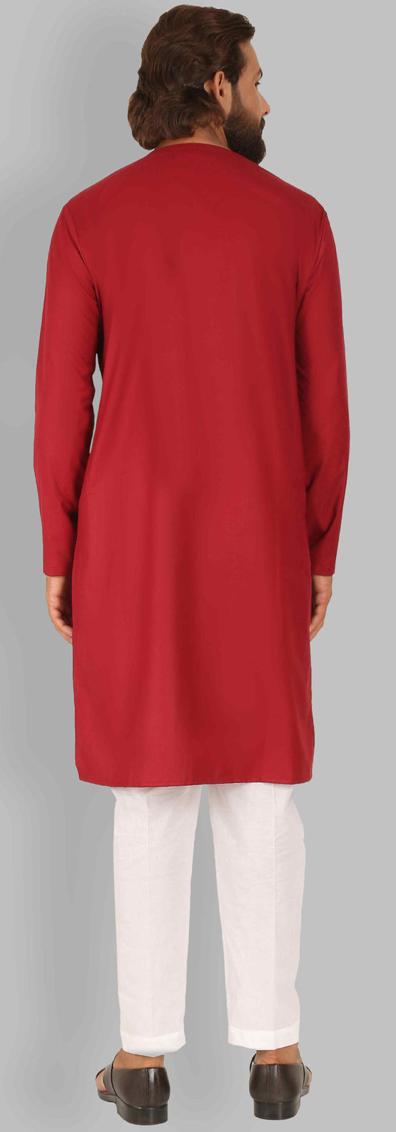 Red and Maroon color Kurta Pyjamas in Cotton fabric with Thread work
