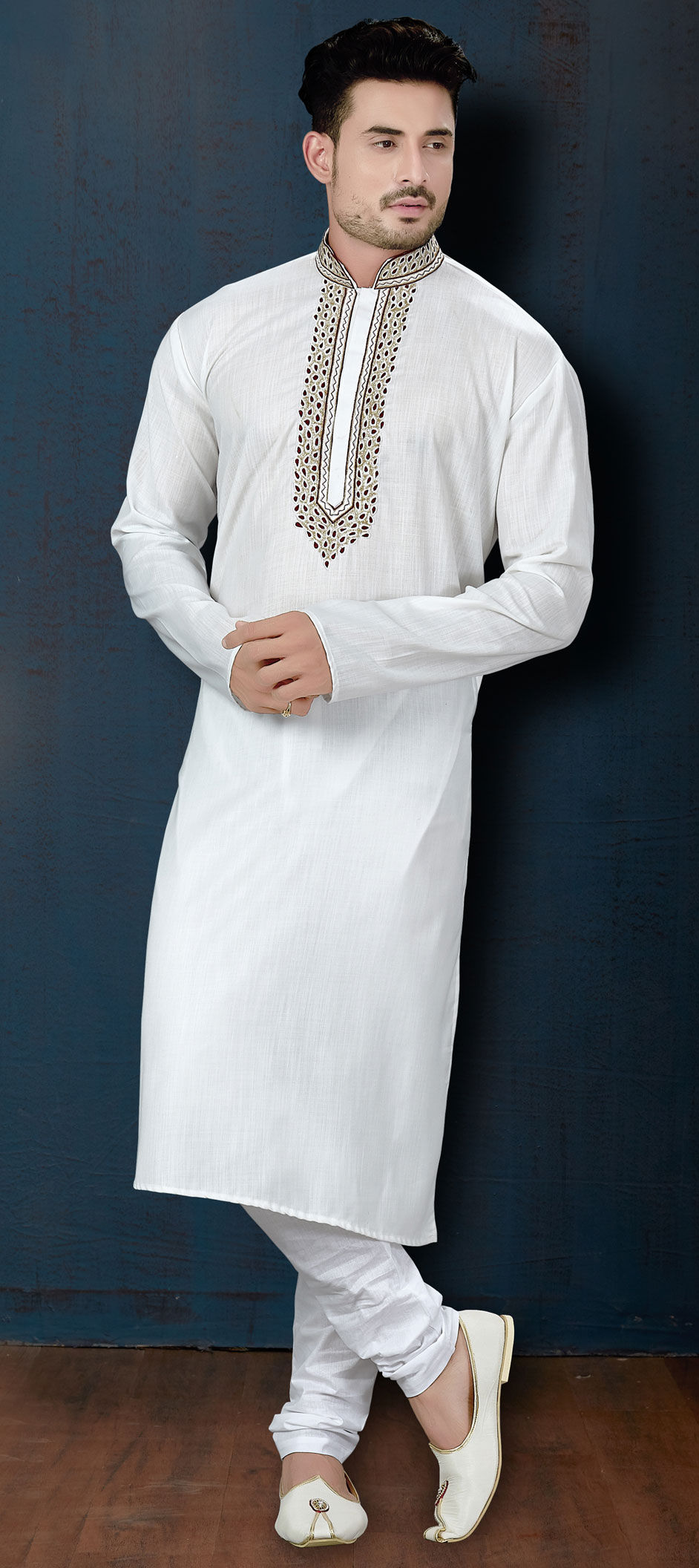 White and Off White color Kurta Pyjamas in Cotton fabric with Thread work