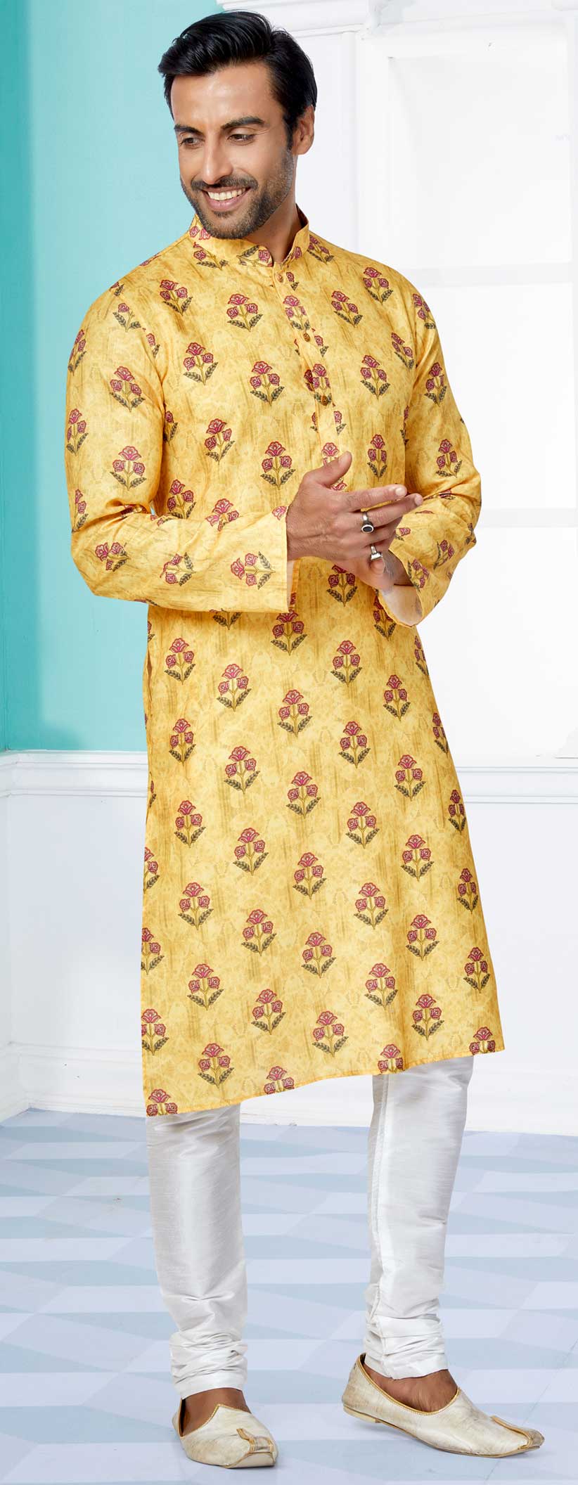 in Yellow with Digital Print work