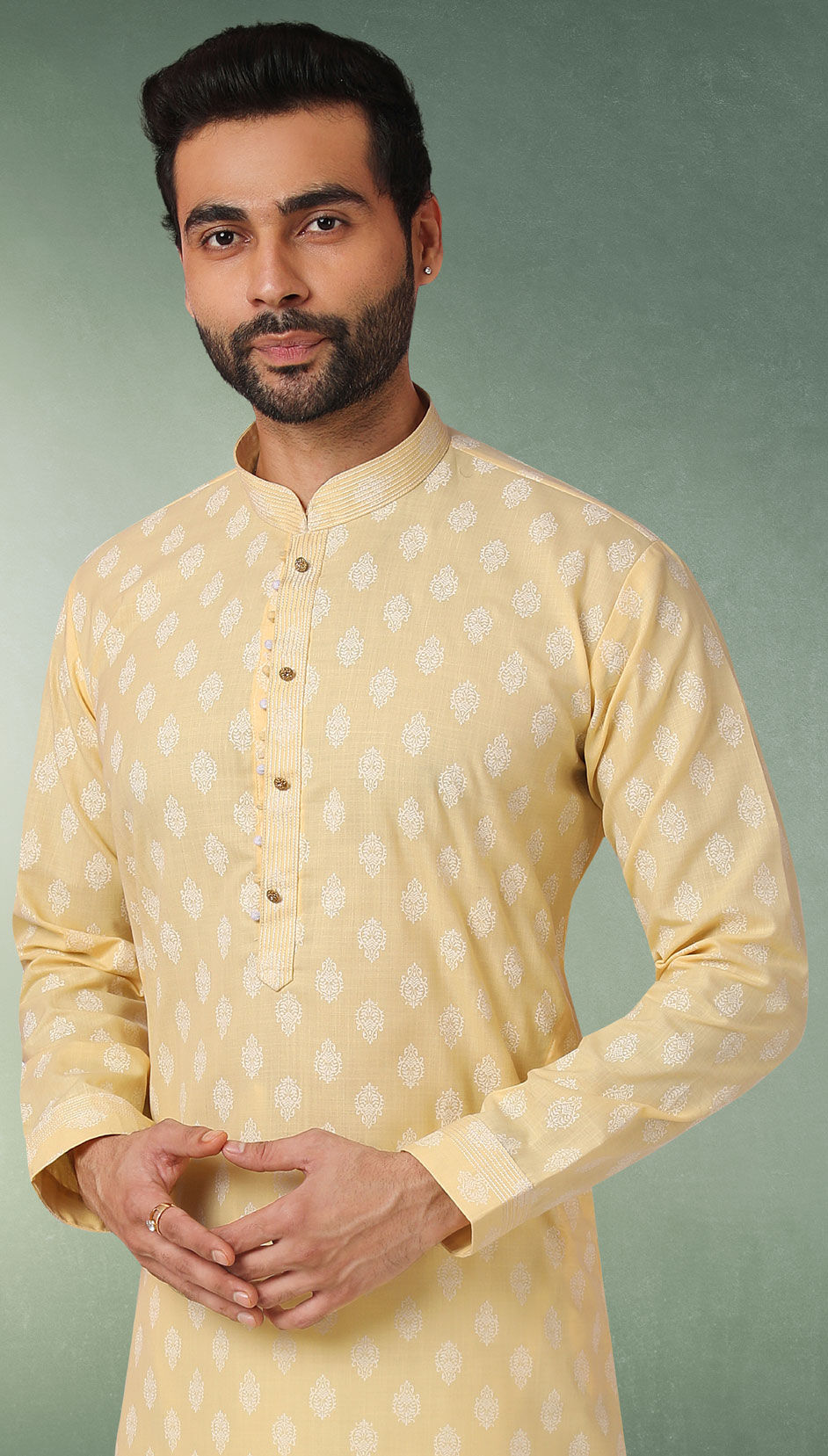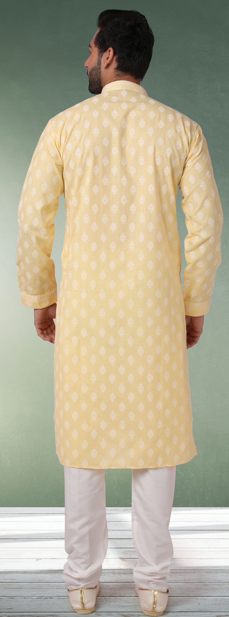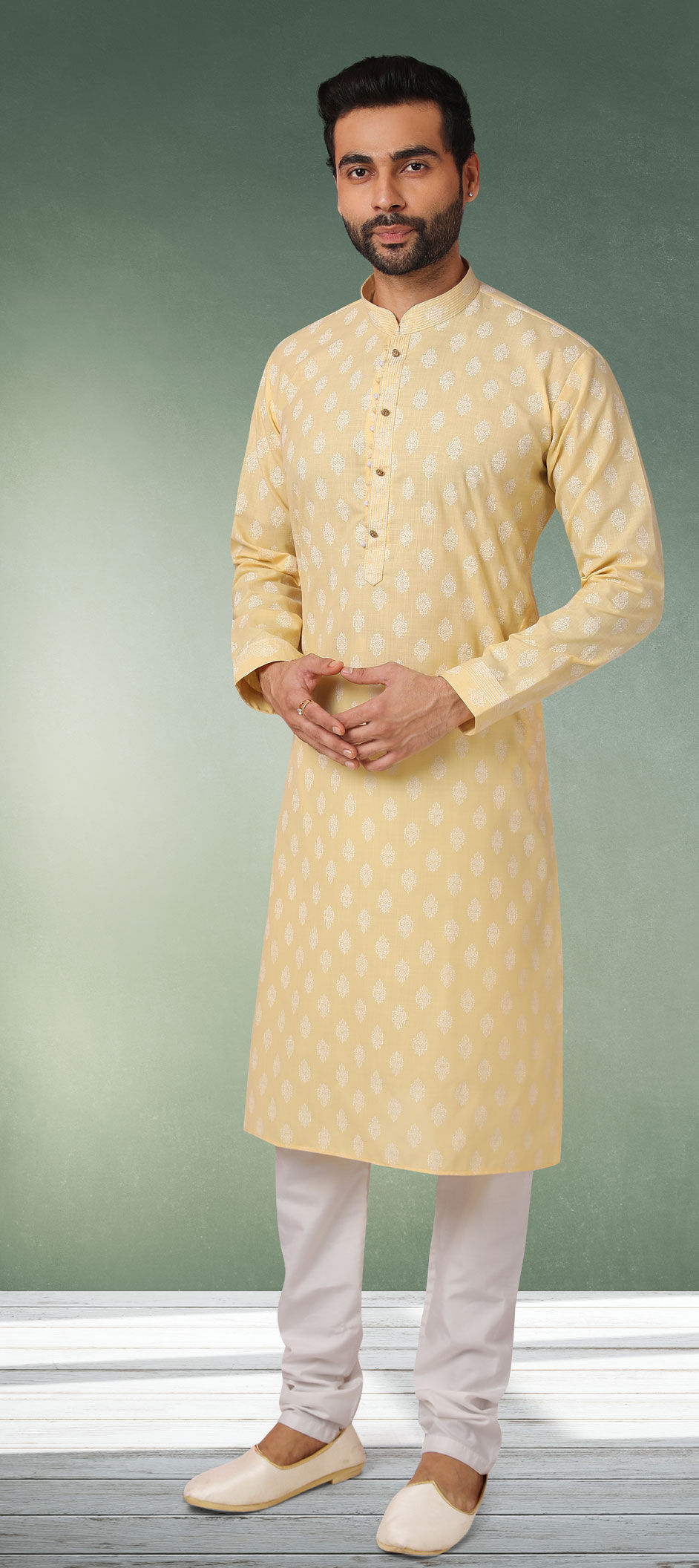 Yellow color Kurta Pyjamas in Cotton fabric with Printed work