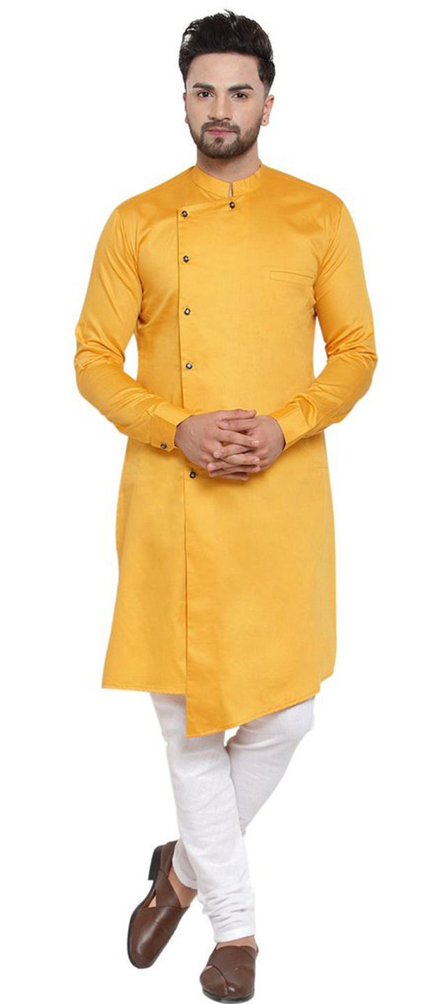 Yellow color Kurta Pyjamas in Cotton fabric with Thread work