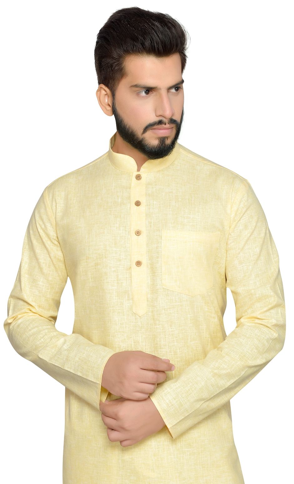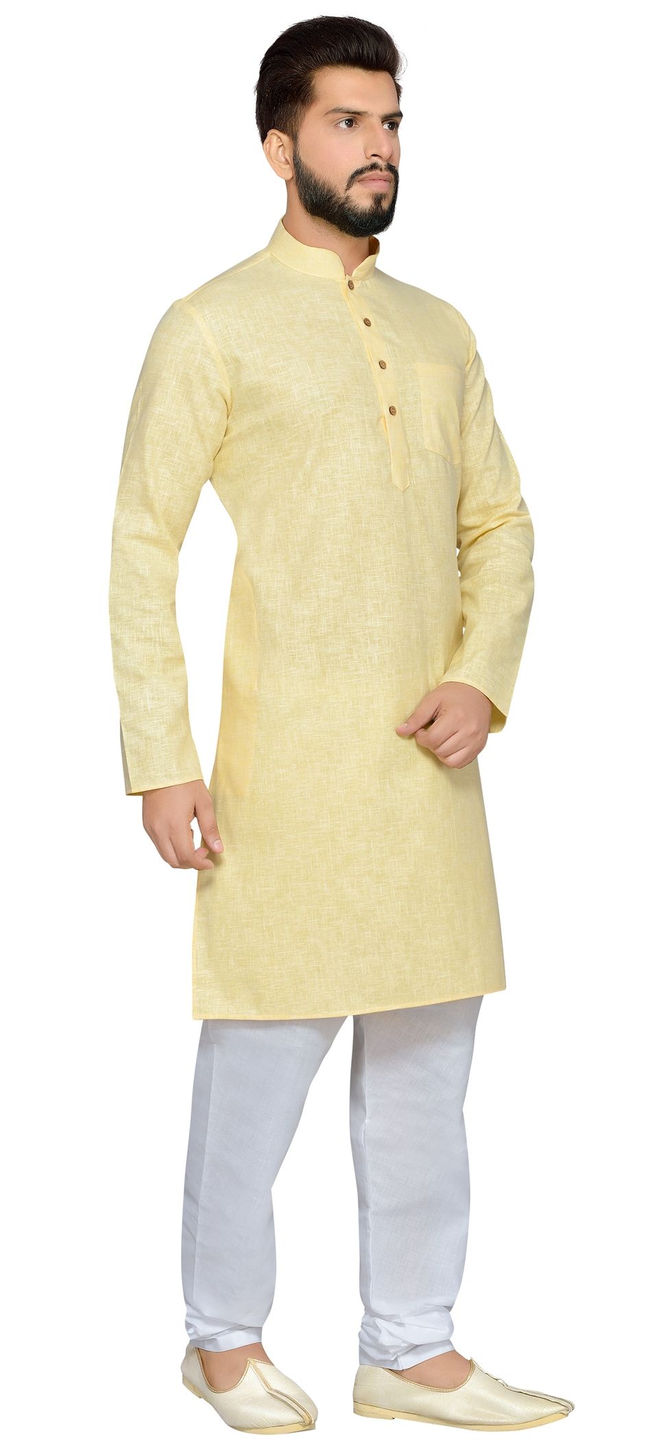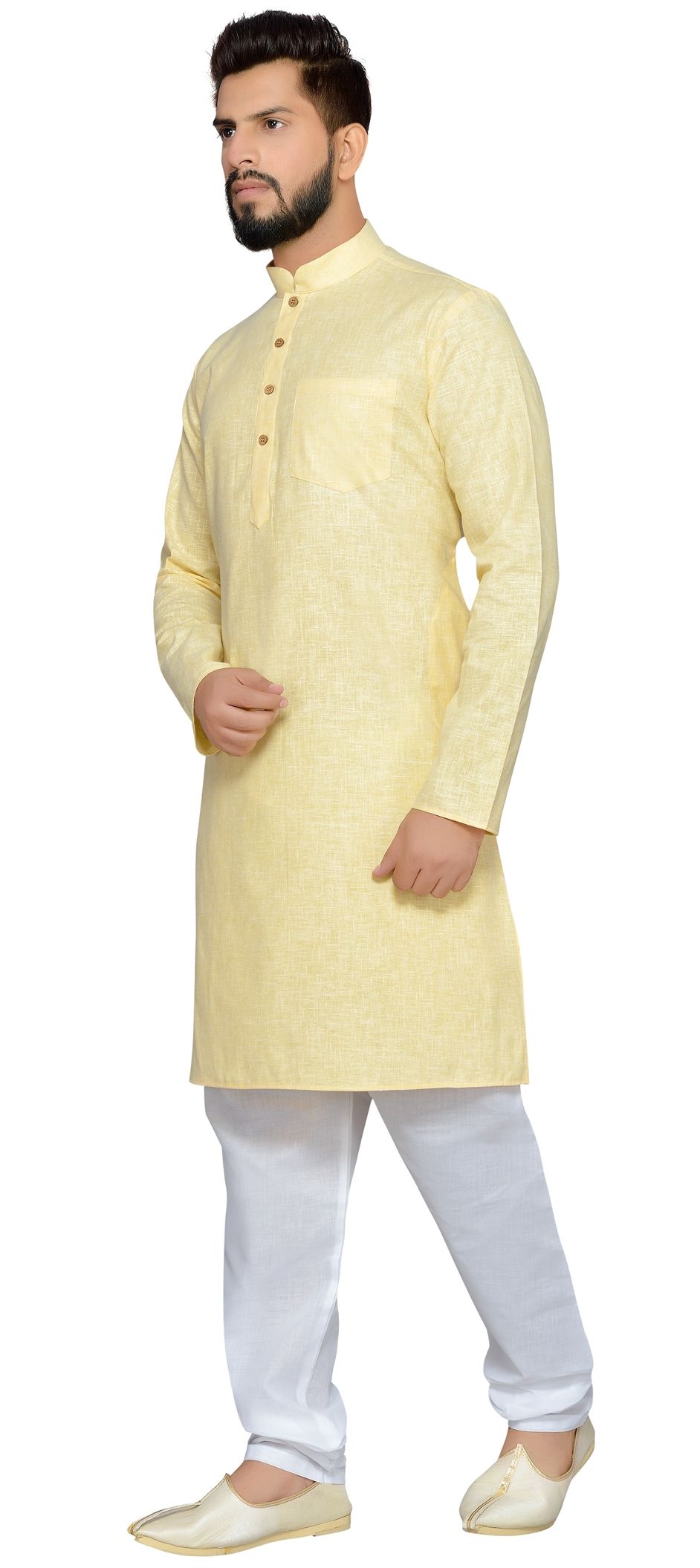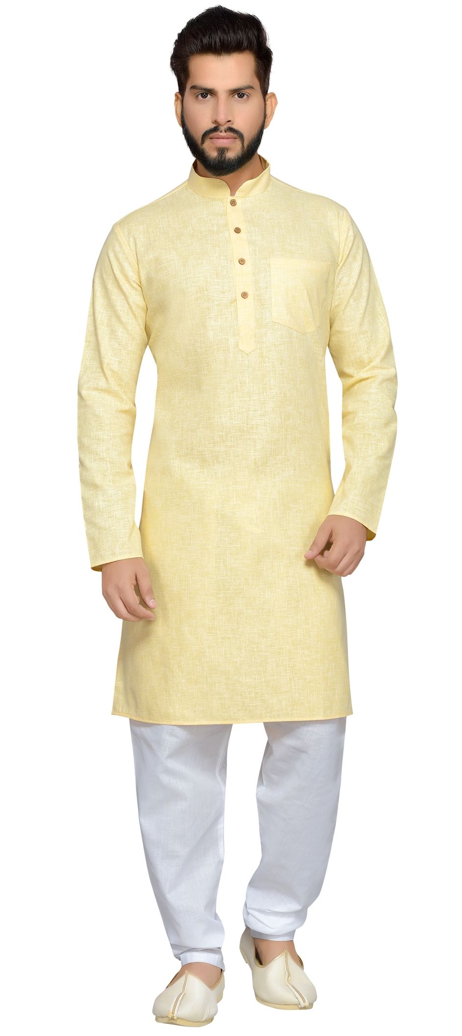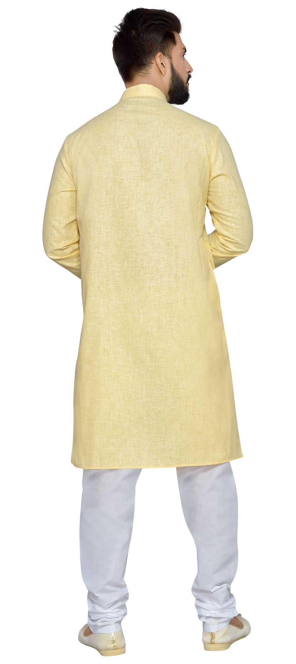 Yellow color Kurta Pyjamas in Cotton fabric with Thread work