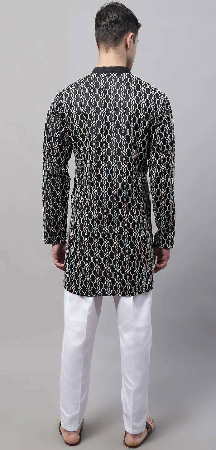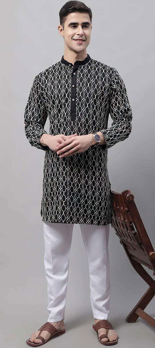 Black and Grey color Kurta Pyjamas in Cotton fabric with Embroidered work