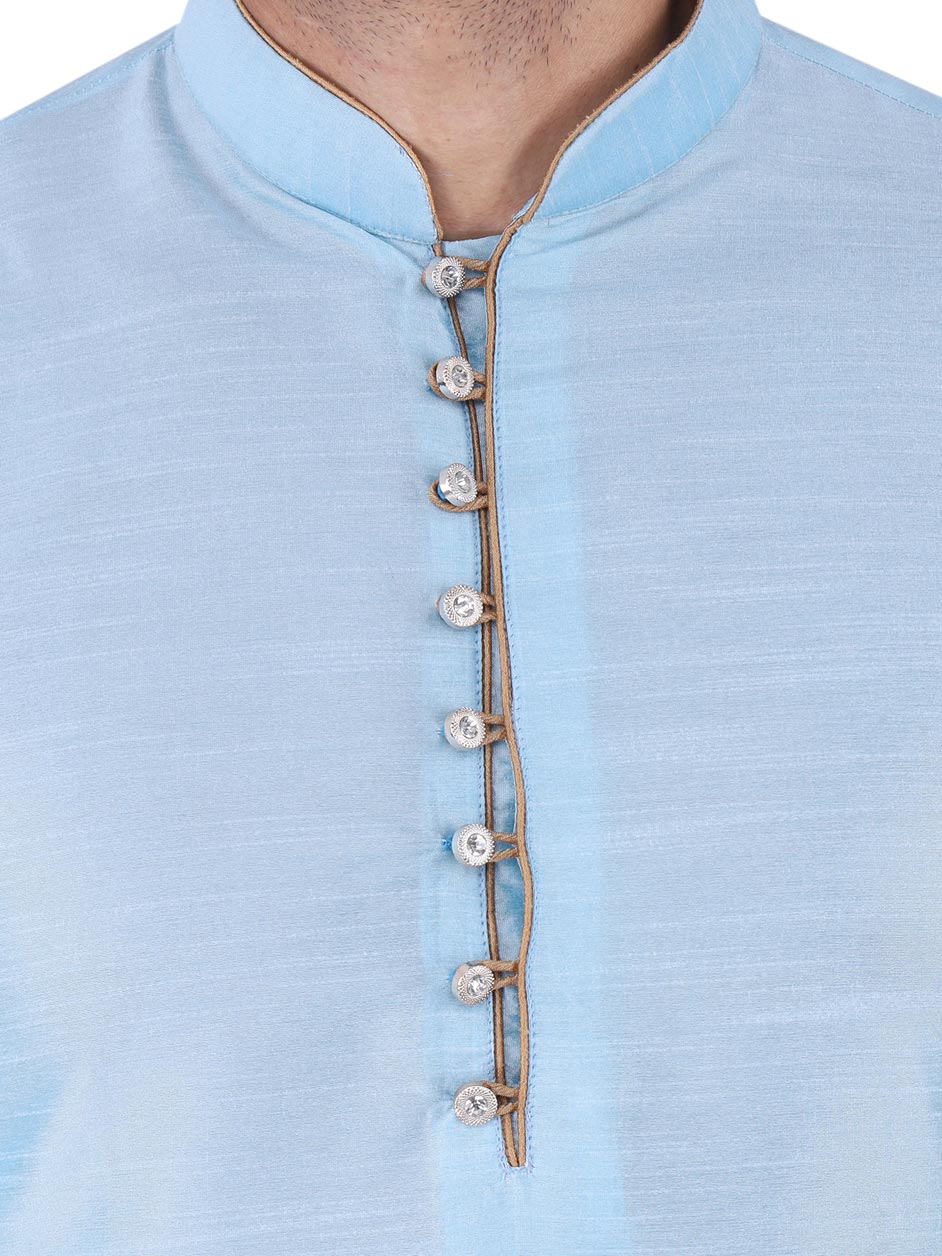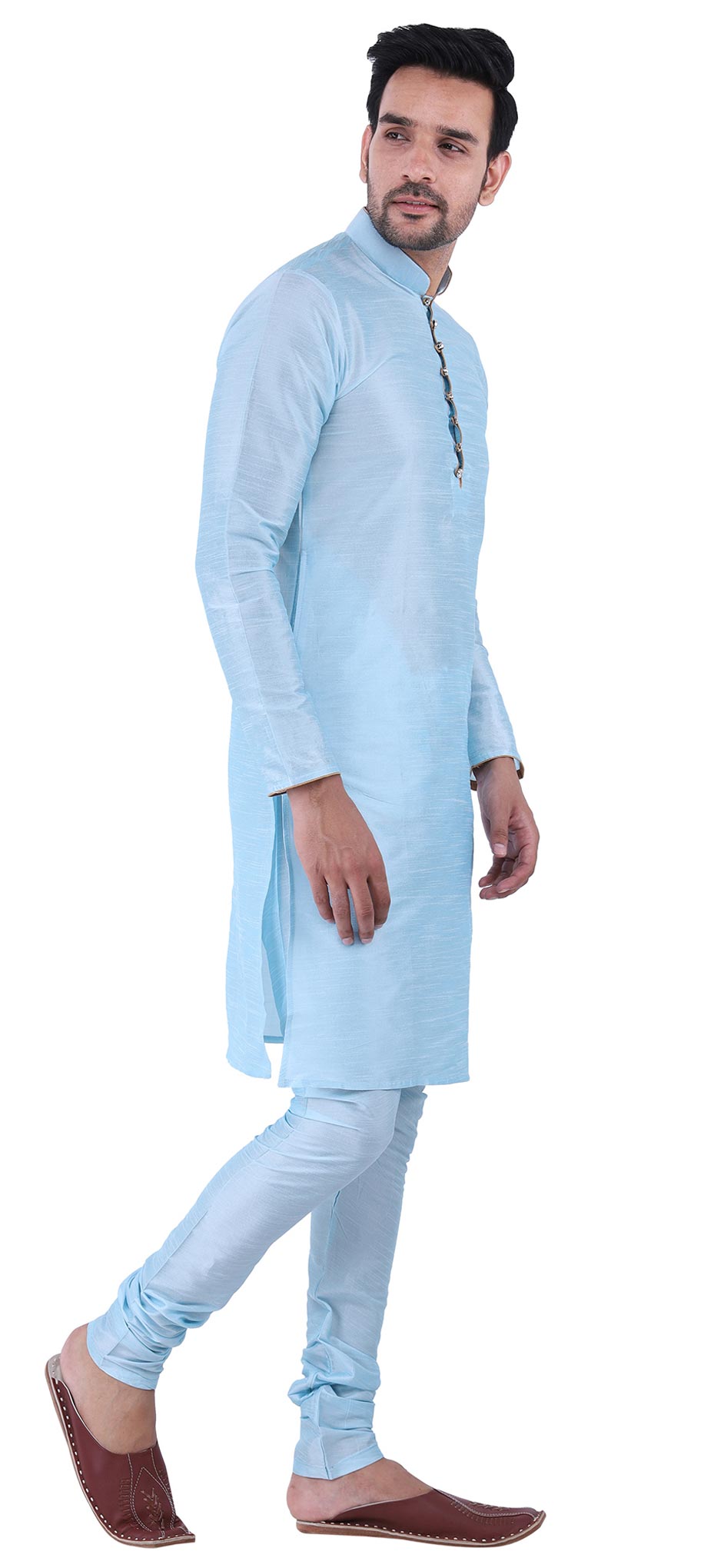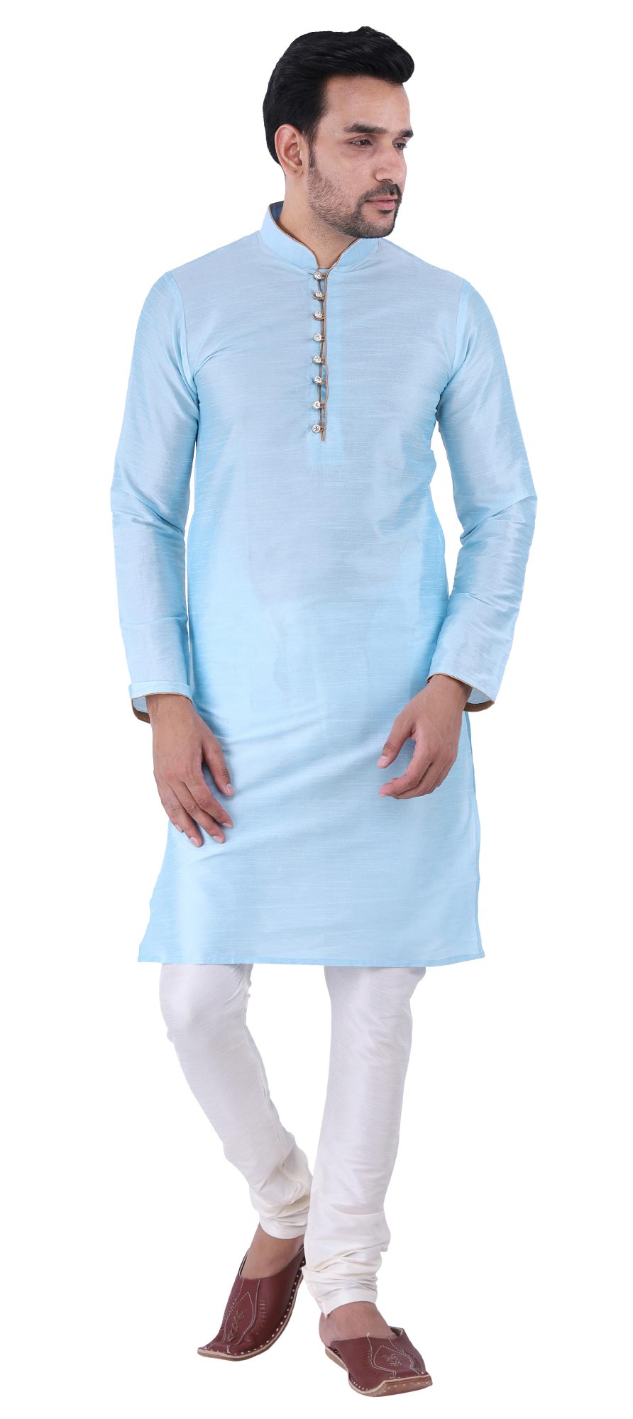 Blue color Kurta Pyjamas in Dupion Silk fabric with Thread work