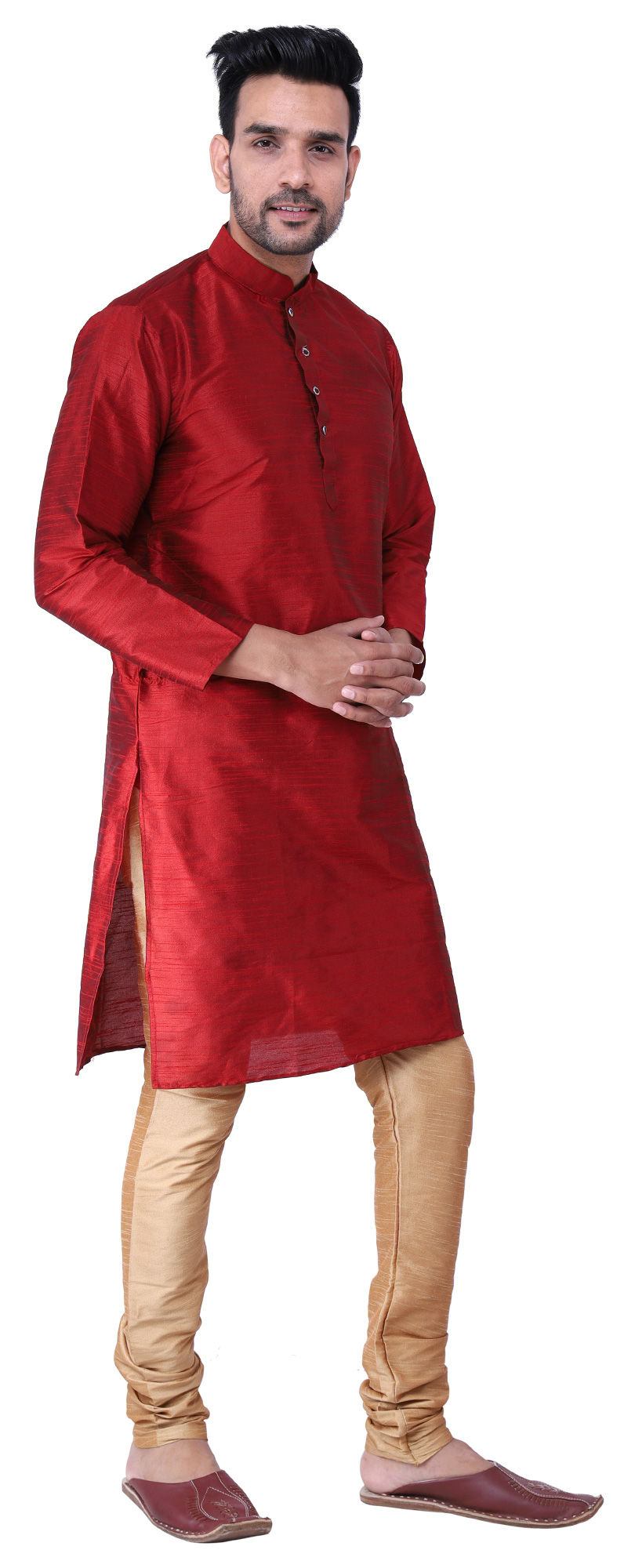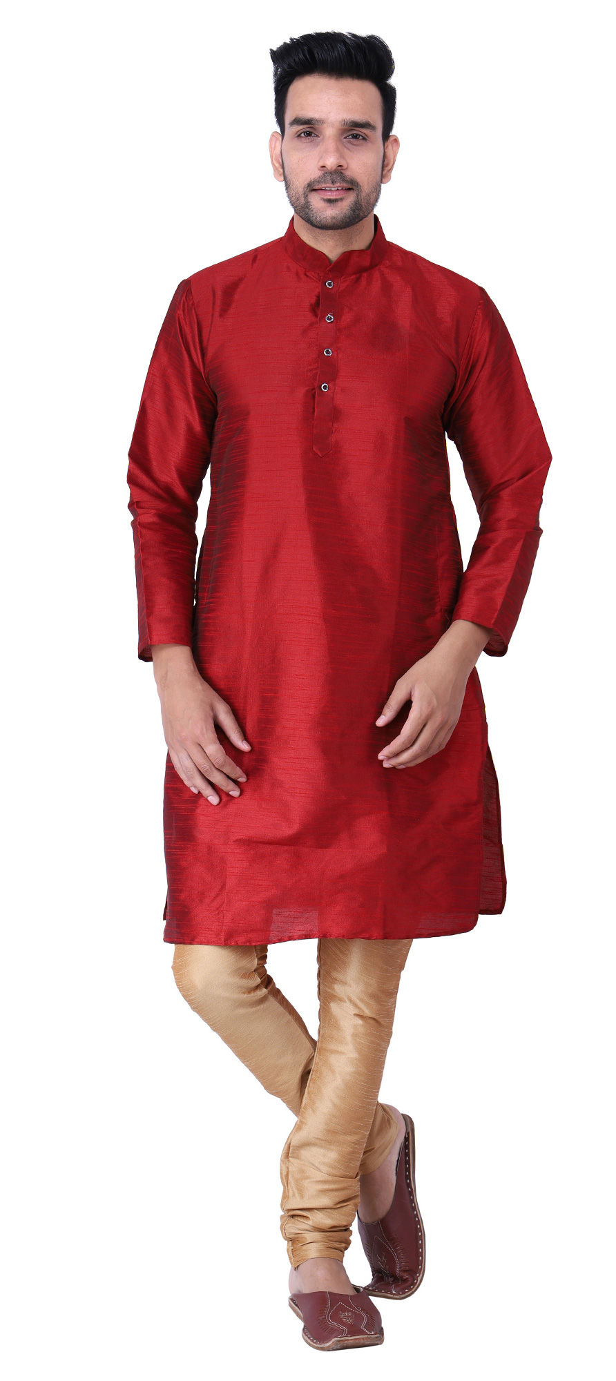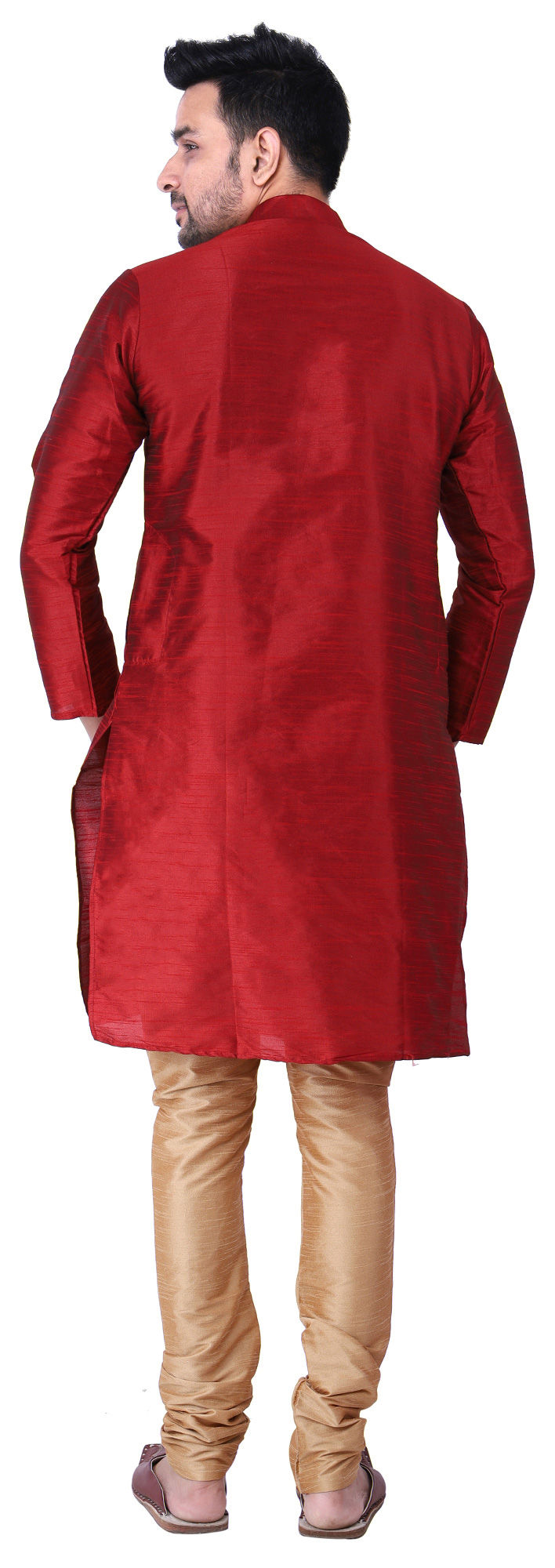 Red and Maroon color Kurta Pyjamas in Dupion Silk fabric with Thread work