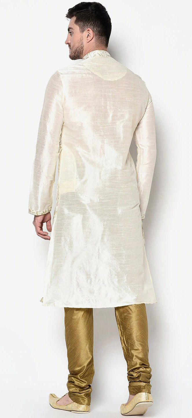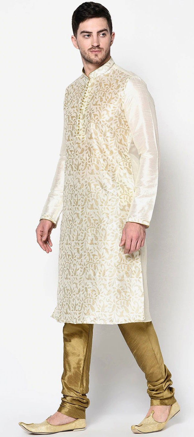 White and Off White color Kurta Pyjamas in Dupion Silk fabric with Printed work