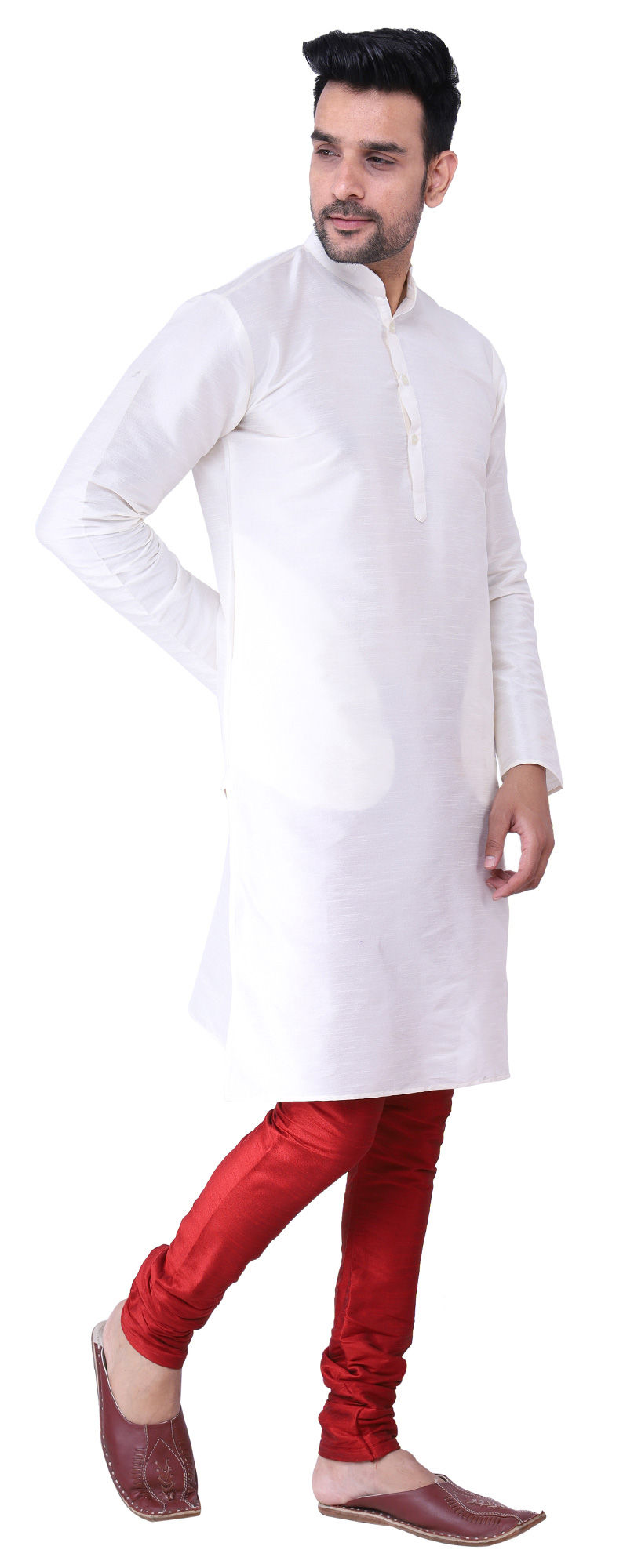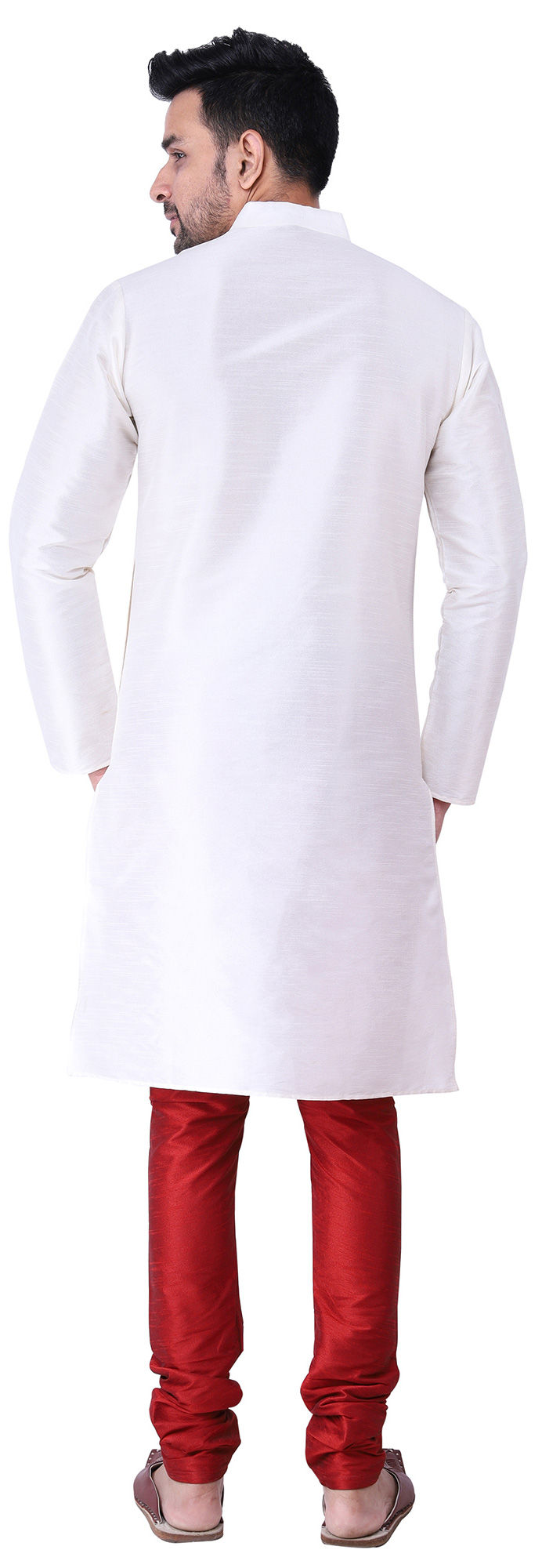 White and Off White color Kurta Pyjamas in Dupion Silk fabric with Thread work