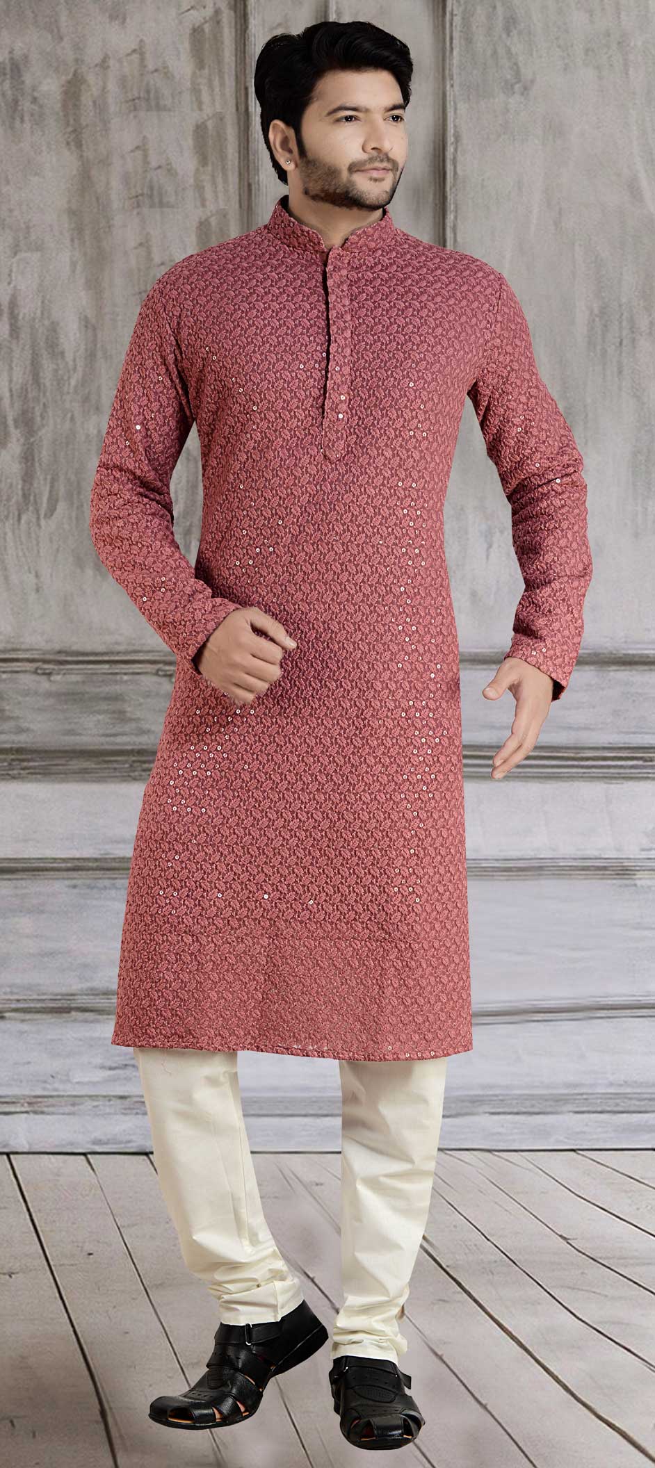 Pink and Majenta color Kurta Pyjamas in Georgette fabric with Embroidered, Sequence, Thread work