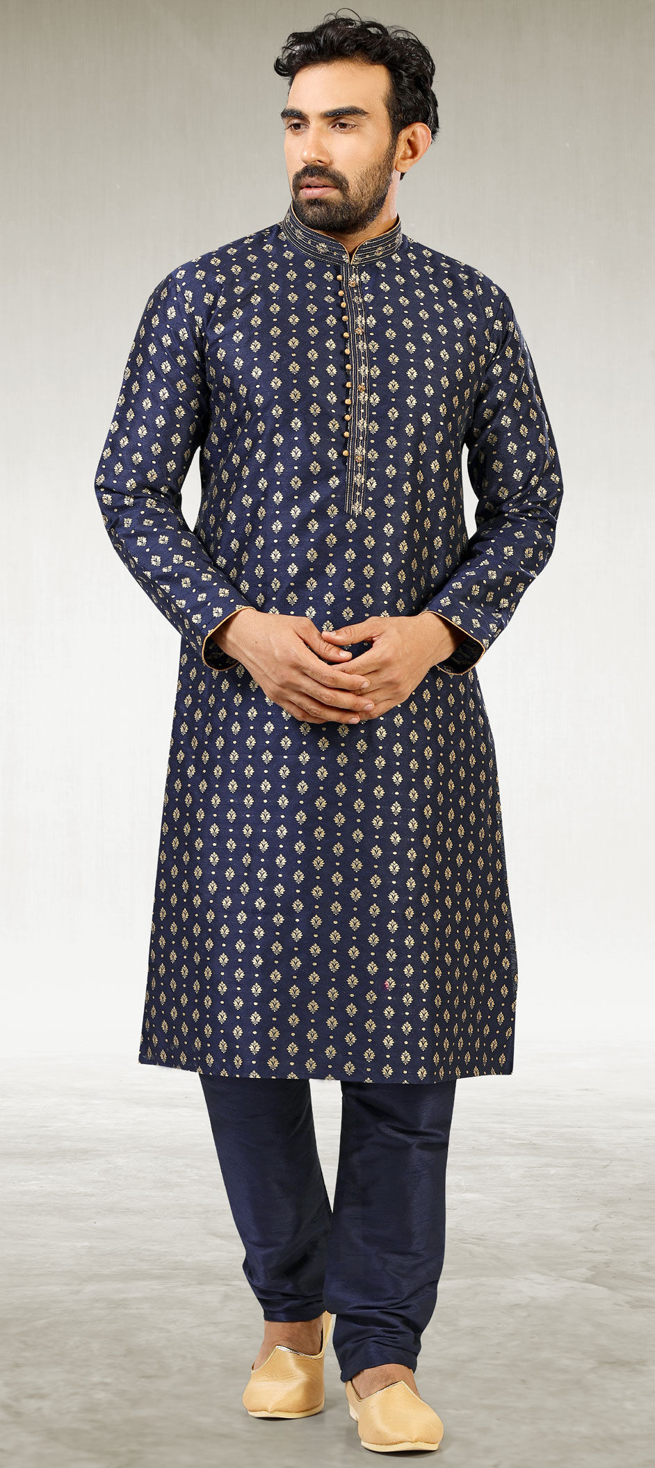 Blue color Kurta Pyjamas in Jacquard fabric with Lace work