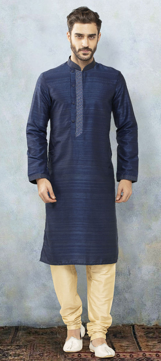 Blue color Kurta Pyjamas in Jacquard fabric with Embroidered, Thread work