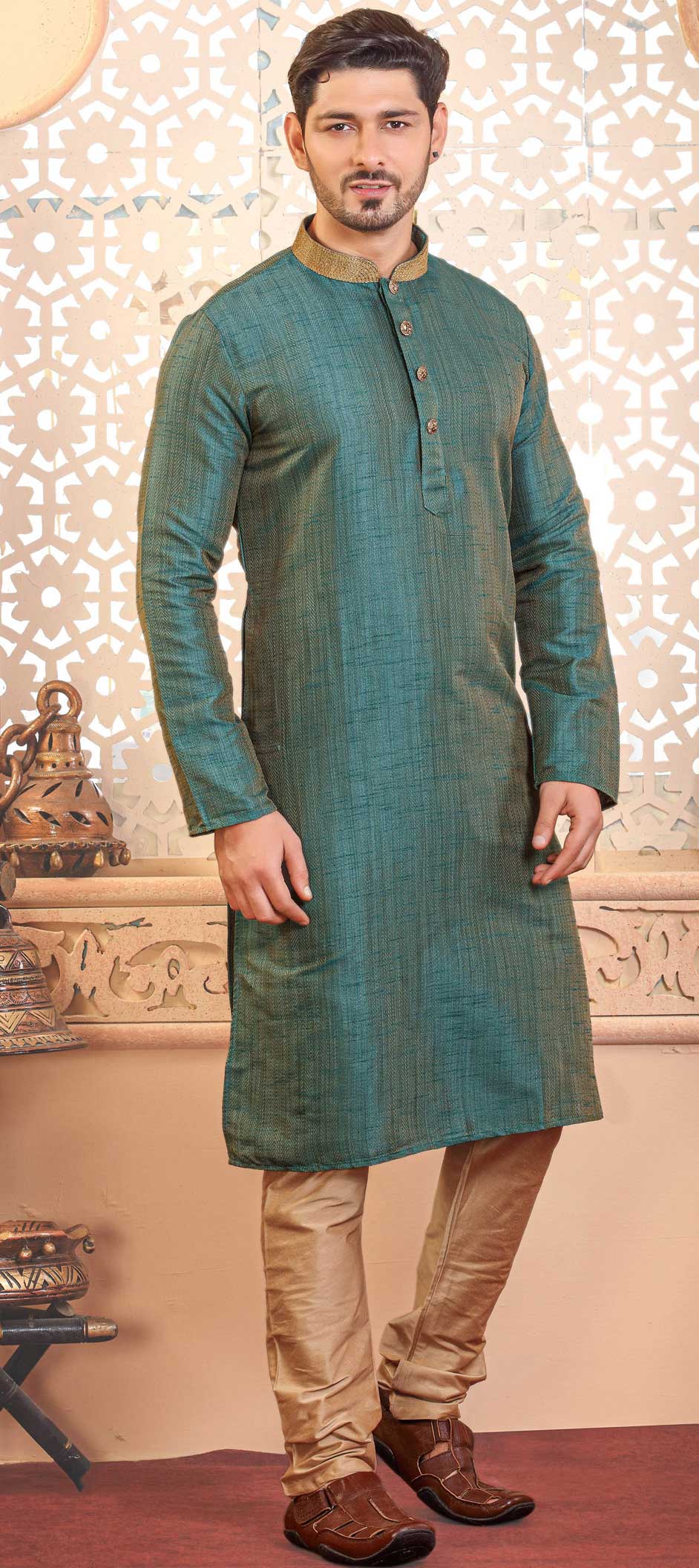 Blue color Kurta Pyjamas in Jacquard fabric with Weaving work