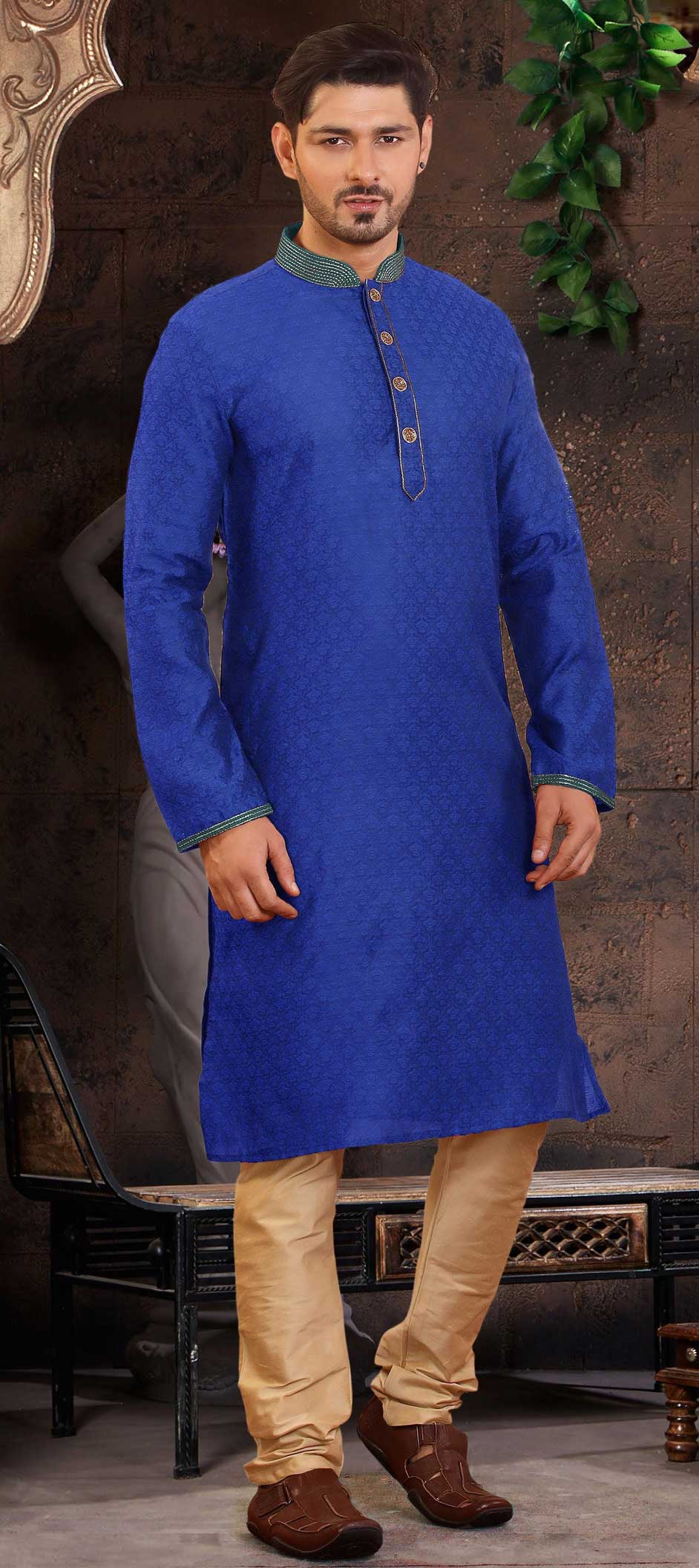 Blue color Kurta Pyjamas in Jacquard fabric with Weaving work